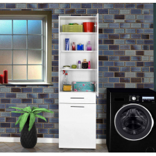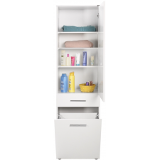 Armoire polyvalente avec panier à linge ADR-621-PP-1 - Compartiment composé de 4 étagères, dont 3 mobiles - 1 compartiment pour panier rabattable - 1 grand tiroir - Utilisation polyvalente: salle de bains, cuisine, balcon, porte, chambre - Poignées en métal chromé - Dimension: 52x187x38.