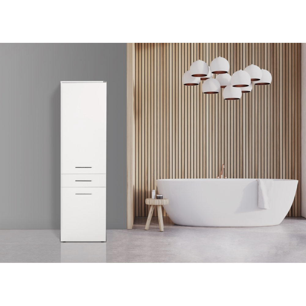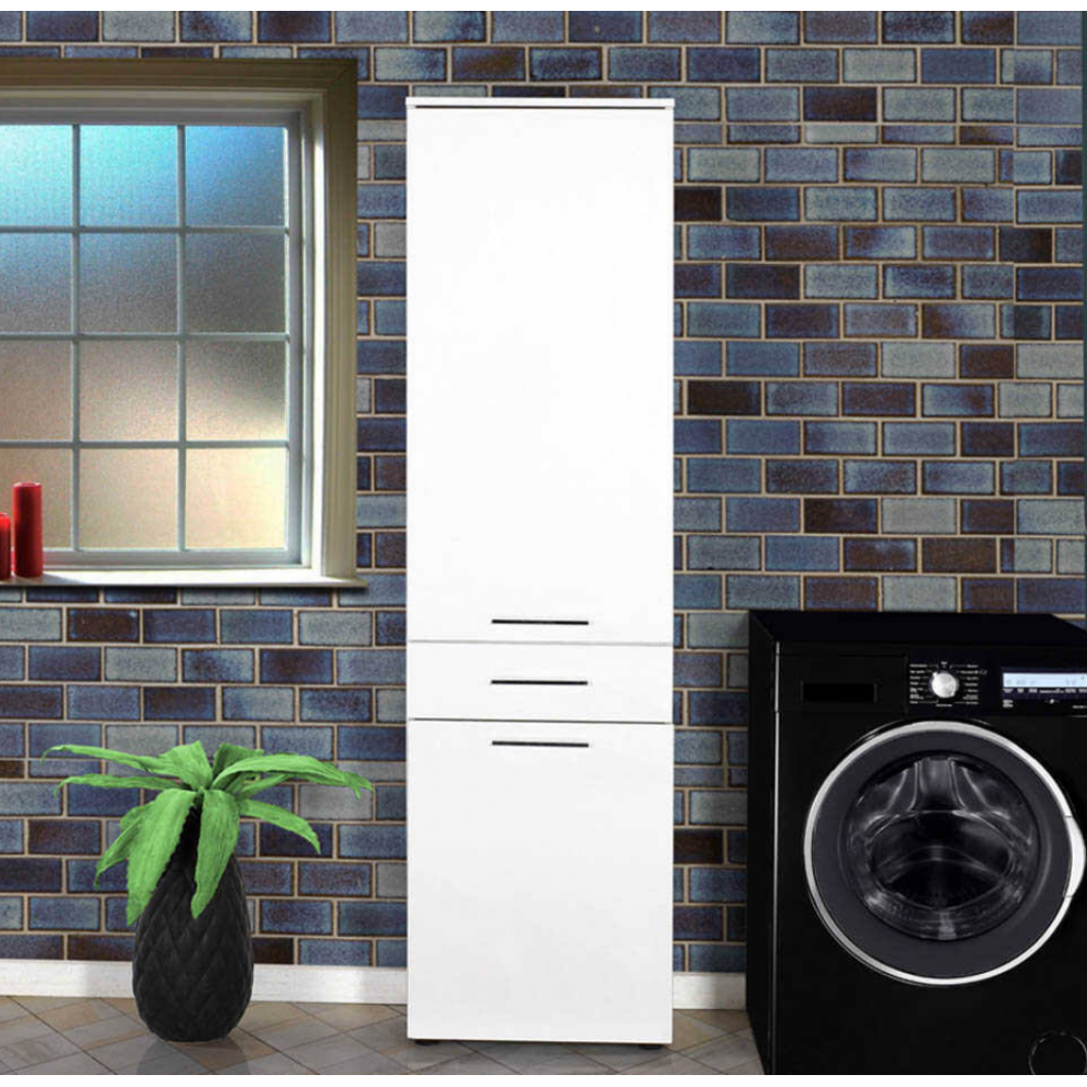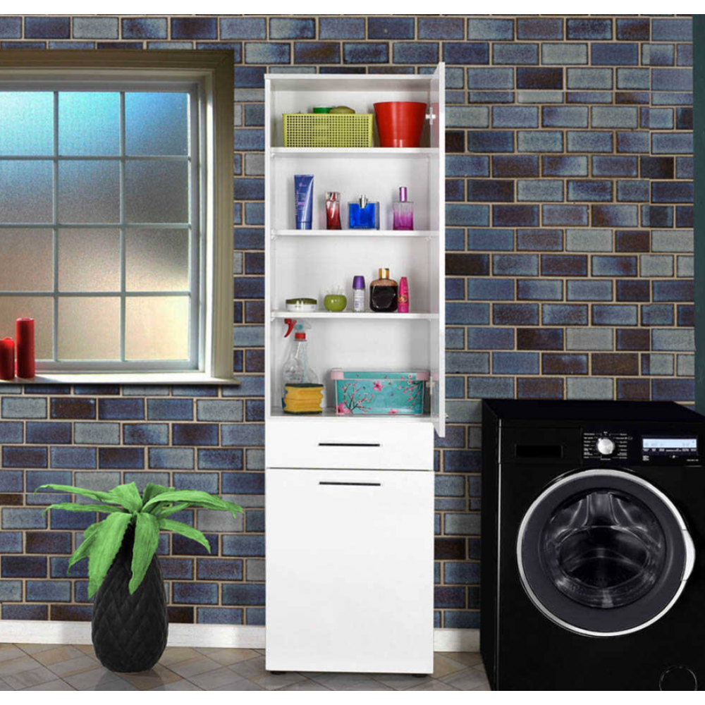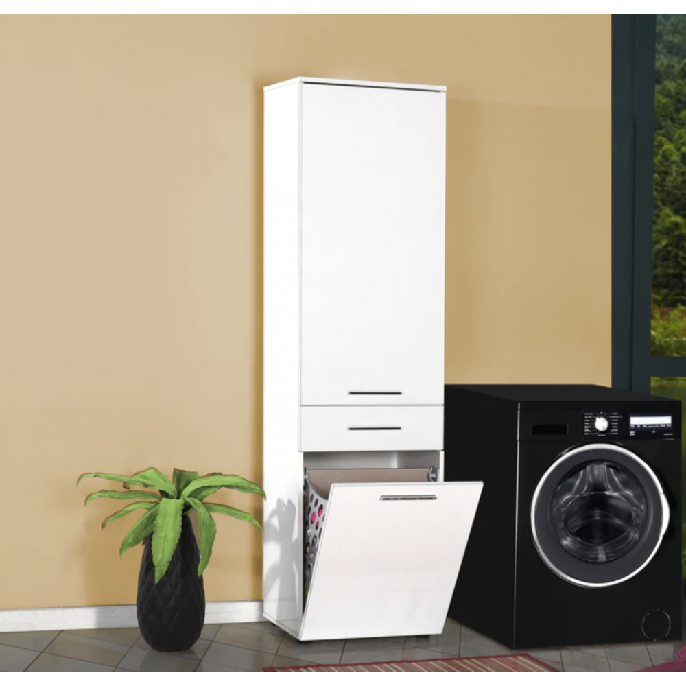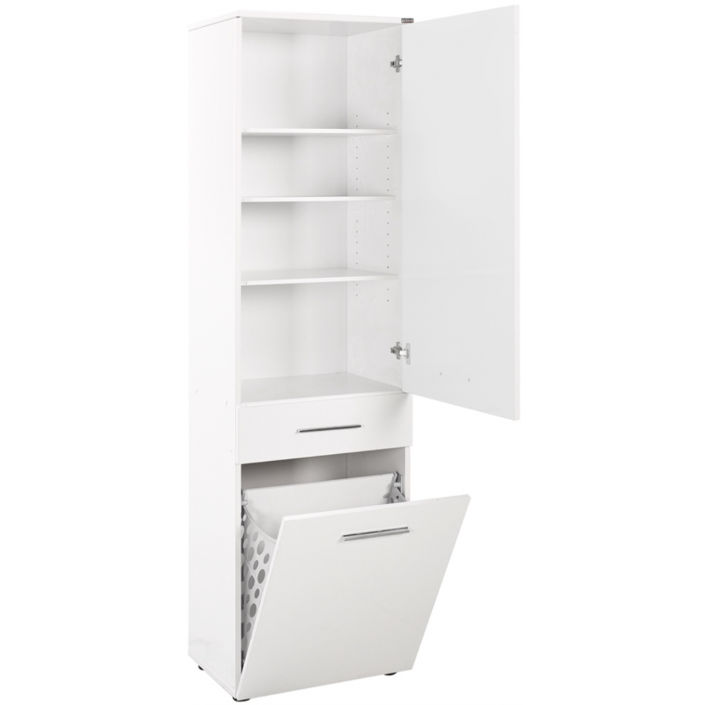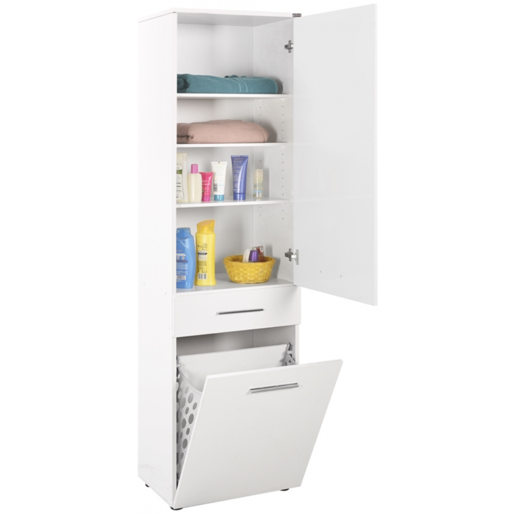 ARMOIRE POLYVALENTE AVEC PANIER A LINGE ADR-621-PP-1 BLANC LAQUE