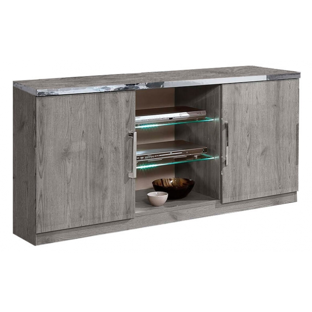 Table tv mesurant 196 cm de long, 53 cm de haut et 42 cm de profondeur - Affiche un design sobre avec un coloris gris clair et des finitions de haute qualité - Constituée de 2 portes et d’un tiroir central ainsi qu’une cavité centrale ouverte pour la disposition d’équipements comme le décodeur - Convient pour les salles de séjour ou les chambres à coucher - Conçue pour accueillir des écrans de toutes dimensions - Montée sur un support plein et compact qui garantit la stabilité du meuble en permanence.