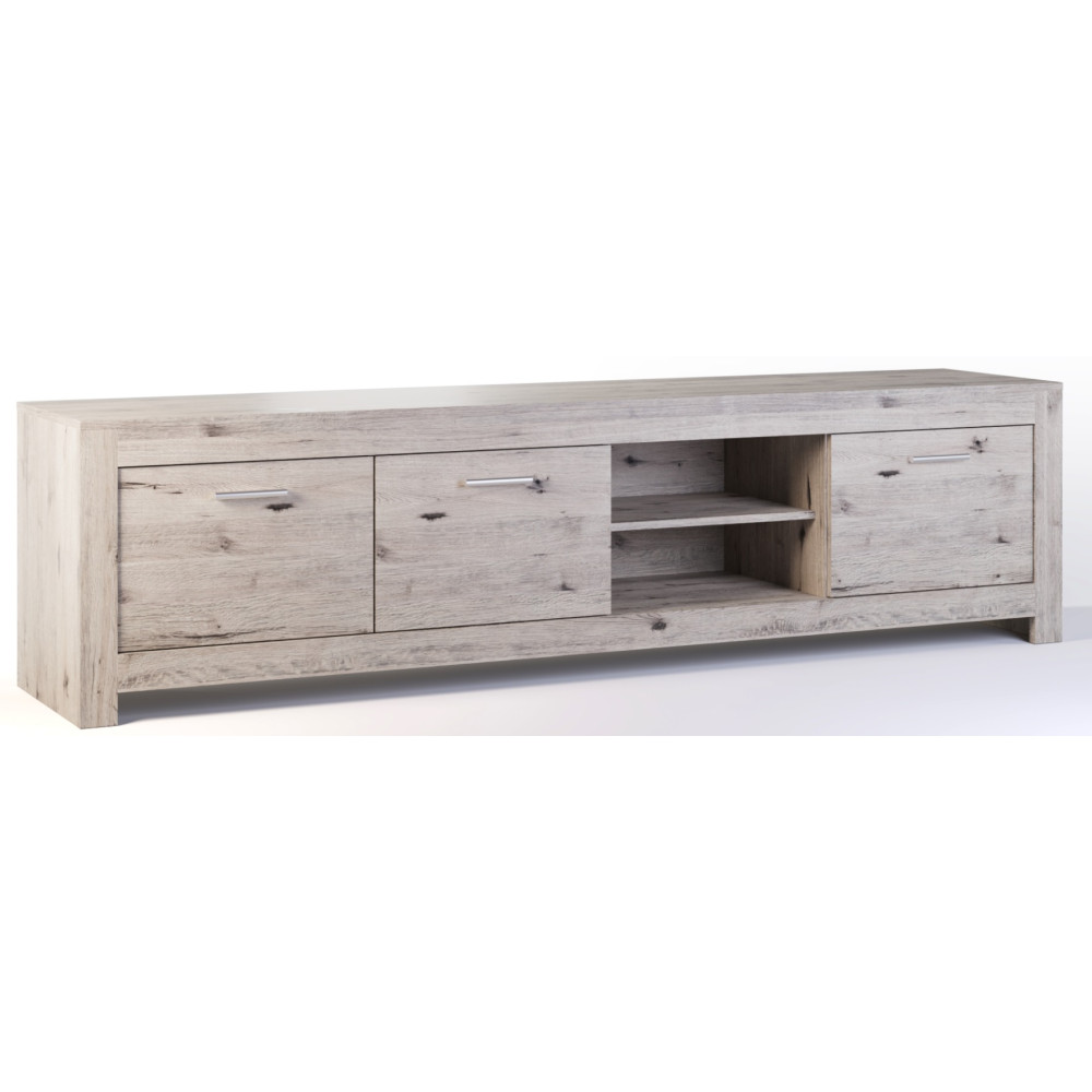 Meuble tv Padvas en bois, avec 4 portes et 2 niches de rangement.