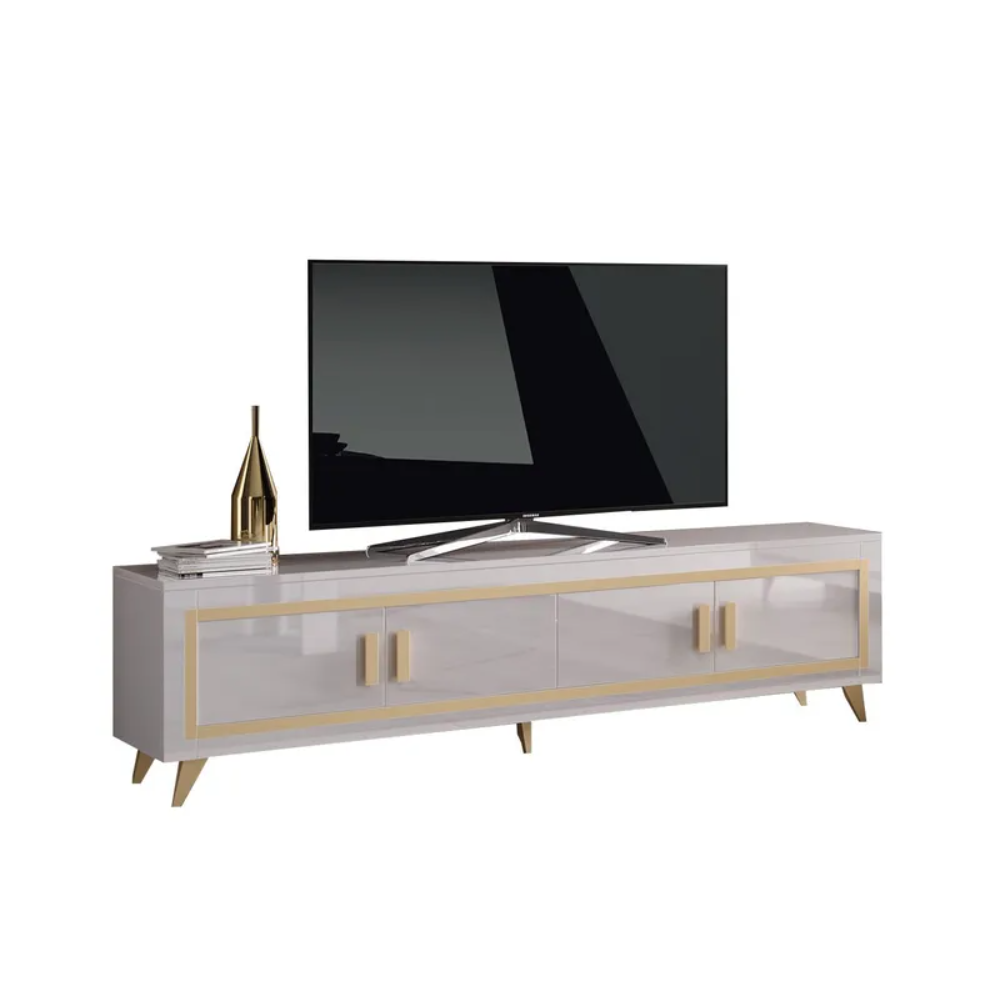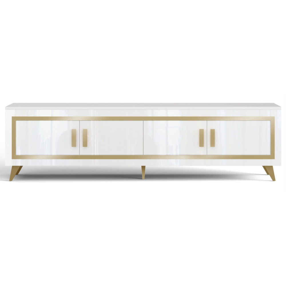 MEUBLE TV GOLD 4 PORTES BLANC LAQUE ET DORE