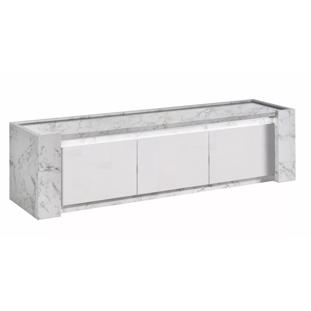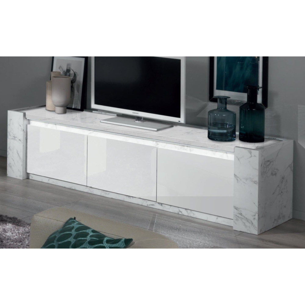 MEUBLE TV VITTORIA BLANC LAQUE ET EFFET MARBRE