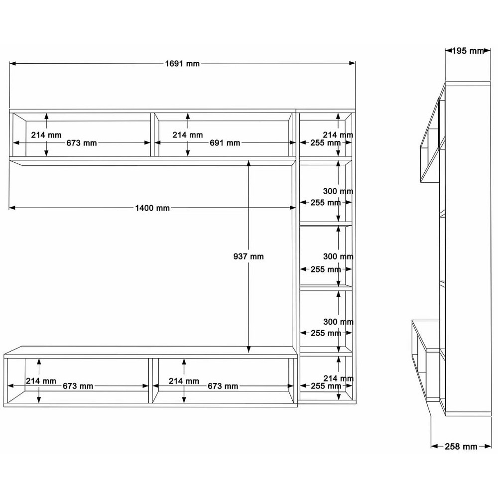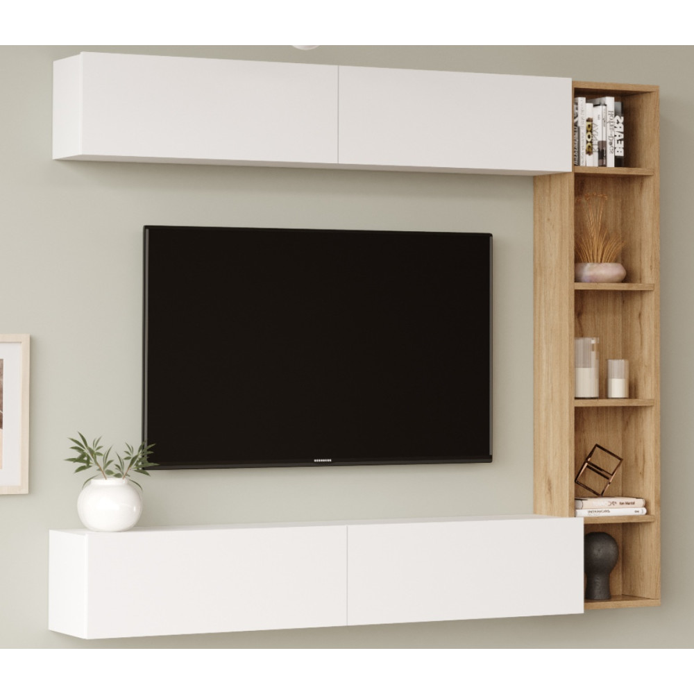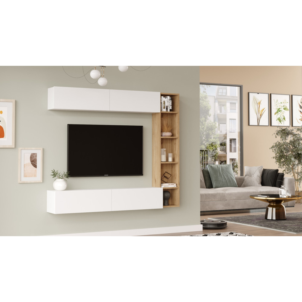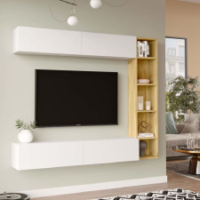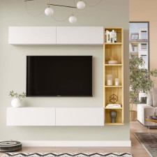 LIVING SUSPENDU CN1 SW TV BLANC ET BOIS CLAIR