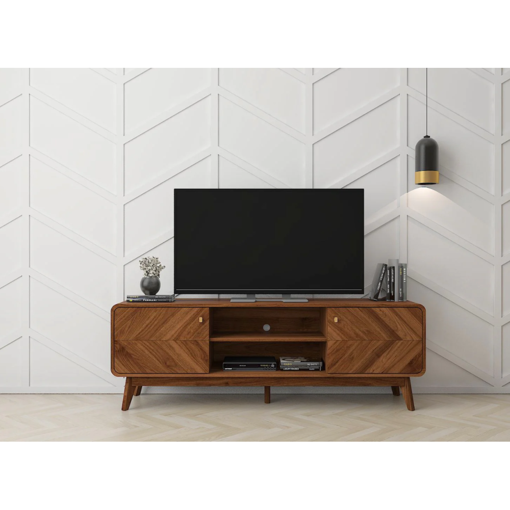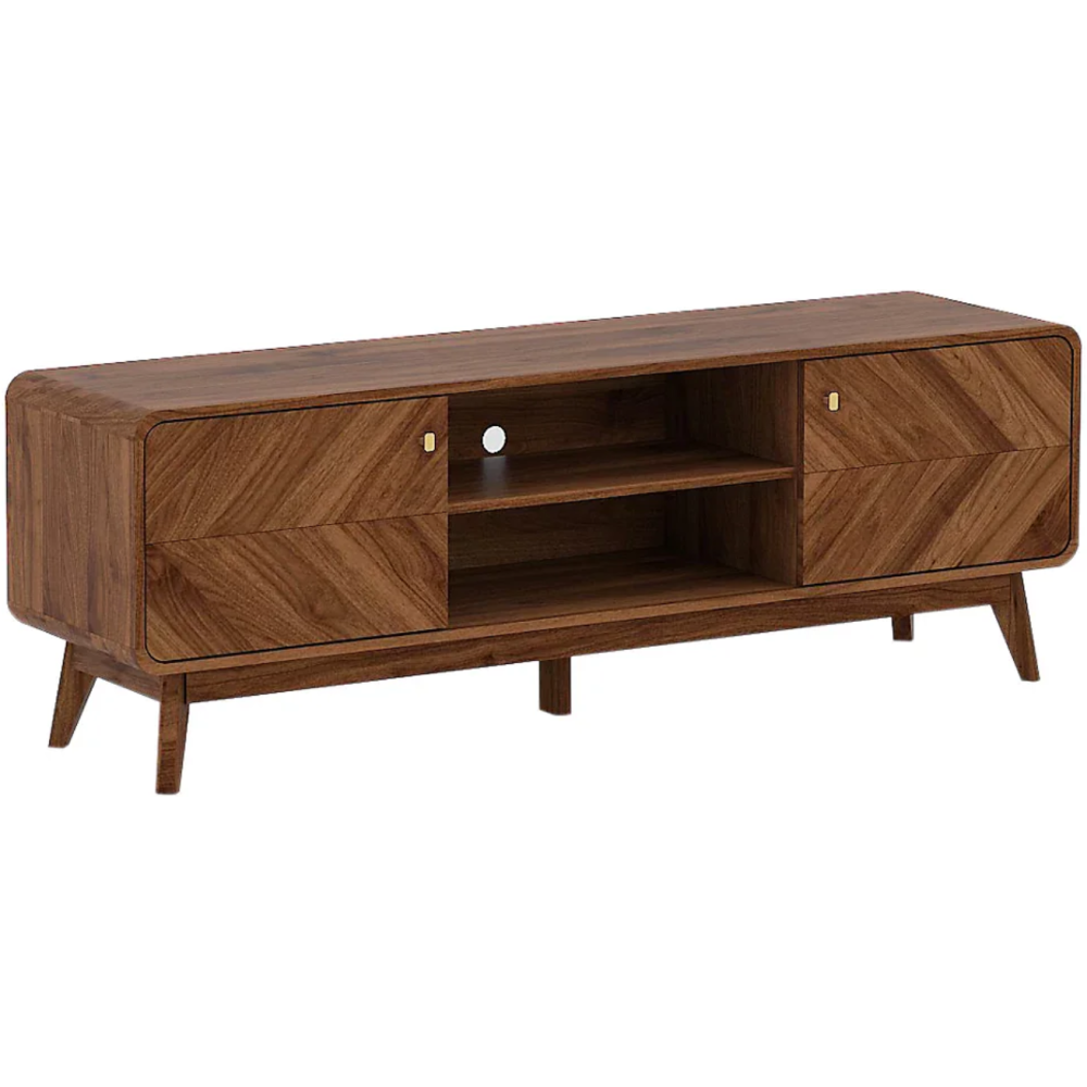 Meuble tv LV44 TV4412MP-CLB - Design boisé et s’intégrant dans n’importe quel décor - Monté sur 5 pattes qui assurent a stabilité - Dispose d’un plateau supérieur de 1600 cm de long et 400 cm de large pour accueillir les écrans tv modernes de toutes tailles - Fait une hauteur de 430 mm - Inclut 2 cavités de rangement fermé et 1 étagère ouverte pour la disposition d’outils divers - Convient pour le rangement de box, ou la disposition de baffles - Conçue avec un passage à l’arrière pour l’insertion des câbles de connexion.