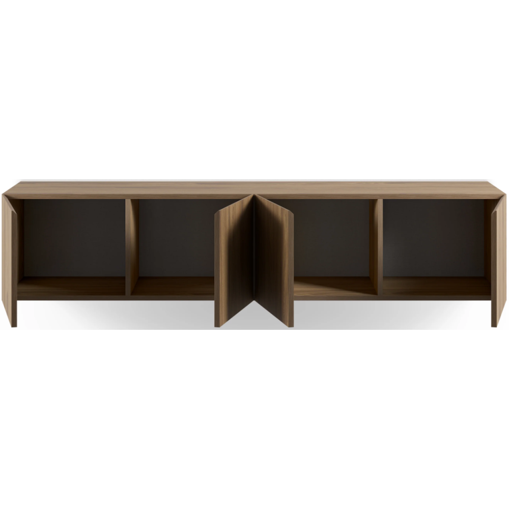 Meuble tv Inti recommandé pour les petits, moyens et grands écrans - Convient pour être installé dans une salle de séjour - Propose une installation en pose libre qui ne nécessite pas de matériel d’installation - Monté sur 4 pattes fermes qui garantissent sa stabilité et facilitent le nettoyage en dessous du meuble - Intègre un plateau supérieur pour accueillir l’écran et des coffres et étagères pour le rangement de périphériques comme les box, barres de son ou lecteurs externes.