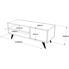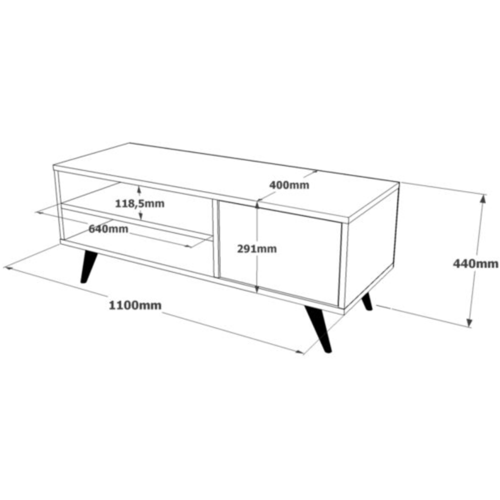Table TV CD1-A moderne et élégant fabriqué en 100% mélamine et conçu pour durer dans le temps - Offre une base solide pour votre télévision - Tient sur un support de 4 pieds en bois de coloris noir - Grâce à ses dimensions généreuses, elle offre suffisamment d'espaces pour votre télévision et autres appareils multimédias - Comprend 1 porte abattante et 2 possibilités de rangement ouverts - Facile à entretenir et facile à monter - Dimensions : 1100 x 445 x 400 mm - EAN 8683342403566.