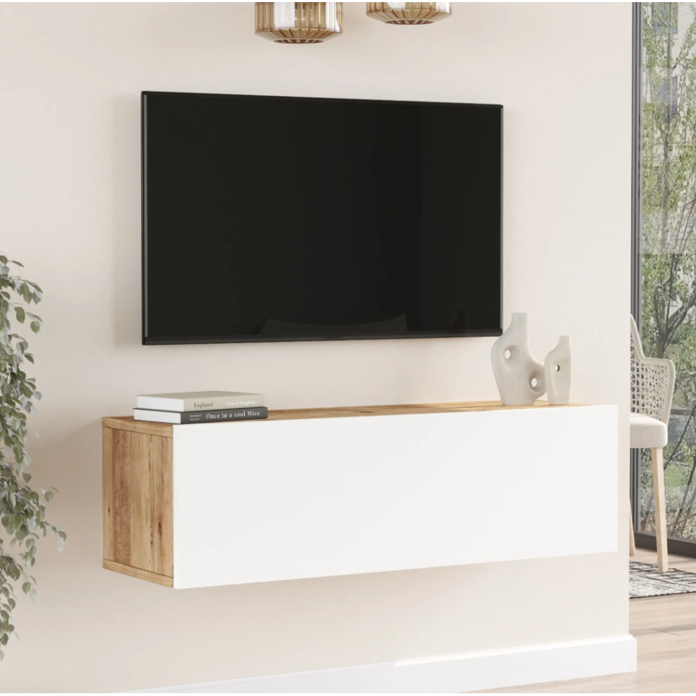 TABLE TV SUSPENDUE FR12-AW - 1 PORTE - BLANC/CHENE