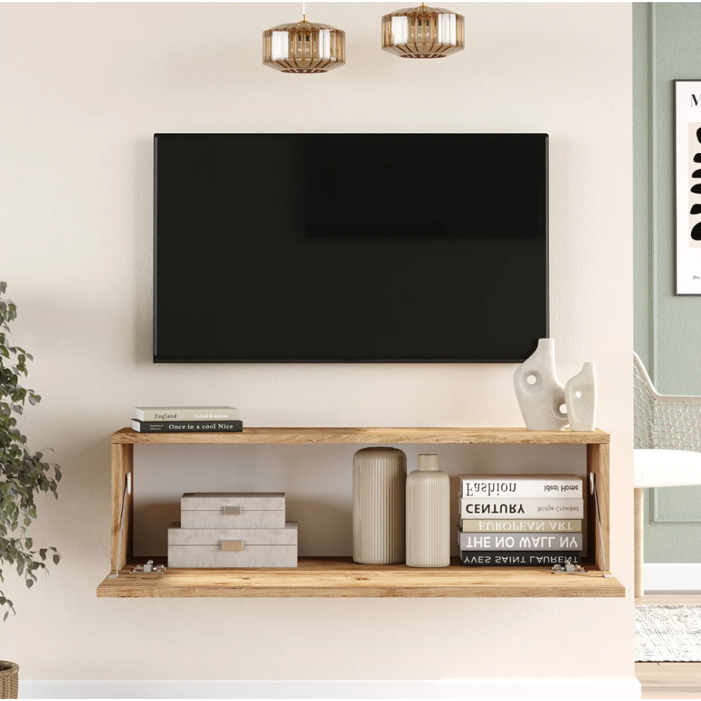 Table TV suspendue FR12-AW pratique et décoratif, un accessoire parfait pour embellir votre intérieur - Style intemporel - Dotée d'une porte - Montage simple et rapide - Apparence soignée - Offre un rangement pratique et discret pour vos appareil multimédias, jeux et DVD - Réel gain de place - Meuble peu encombrant et idéal pour les petits comme les grands espaces - Facilite une organisation soignée de votre coin télé - Entretien facile - Dimensions :  1000 x 297 mm.