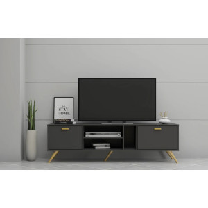 Meuble TV MODI YC TV00911-MP - Couleur : Noire - Embarque des cavités de rangement ouvertes et fermées offrant une grande flexibilité pour disposer les objets du quotidien - Propose un design sobre et attractif qui s’insère dans tous les décors internes - Dispose d’un plateau supérieur destiné à accueillir un écran tv de petite, moyenne ou grande taille - Dimensions du meuble tv : 160 cm de long, 40 cm de large et 47 cm de haut.