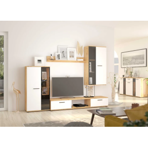 Meuble TV 92373 avec niche de rangement - deux portes. Dimension: 2000X400X410. Coloris: blanc doré.