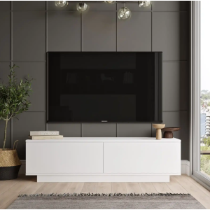 Table tv mesurant 196 cm de long, 53 cm de haut et 42 cm de profondeur - Affiche un design sobre avec un coloris gris clair et des finitions de haute qualité - Constituée de 2 portes et d’un tiroir central ainsi qu’une cavité centrale ouverte pour la disposition d’équipements comme le décodeur - Convient pour les salles de séjour ou les chambres à coucher - Conçue pour accueillir des écrans de toutes dimensions - Montée sur un support plein et compact qui garantit la stabilité du meuble en permanence.