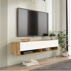 Table TV suspendue FR10-A effet chêne rustique au style raffiné au design épuré pour ajouter une touche de beau dans votre salon - Bénéficie de 2 compartiments fermés qui offrent un grand espace de rangement pour tous vos indispensables multimédias - Adaptation parfaite à tous les espaces - Se monte facilement et vous permet de profiter sans effort de votre TV - Structure robuste et facile d'entretien - Idéal pour optimiser la place et mieux organiser son intérieur.