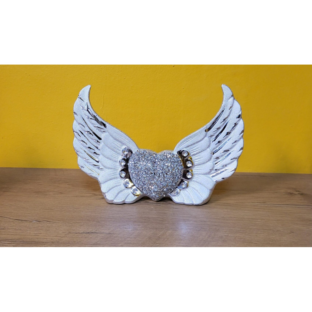 Décoration cœur ailé avec strass et diamant fantaisie - Coloris argenté, dimensions : 18x26cm - Réf : 664.