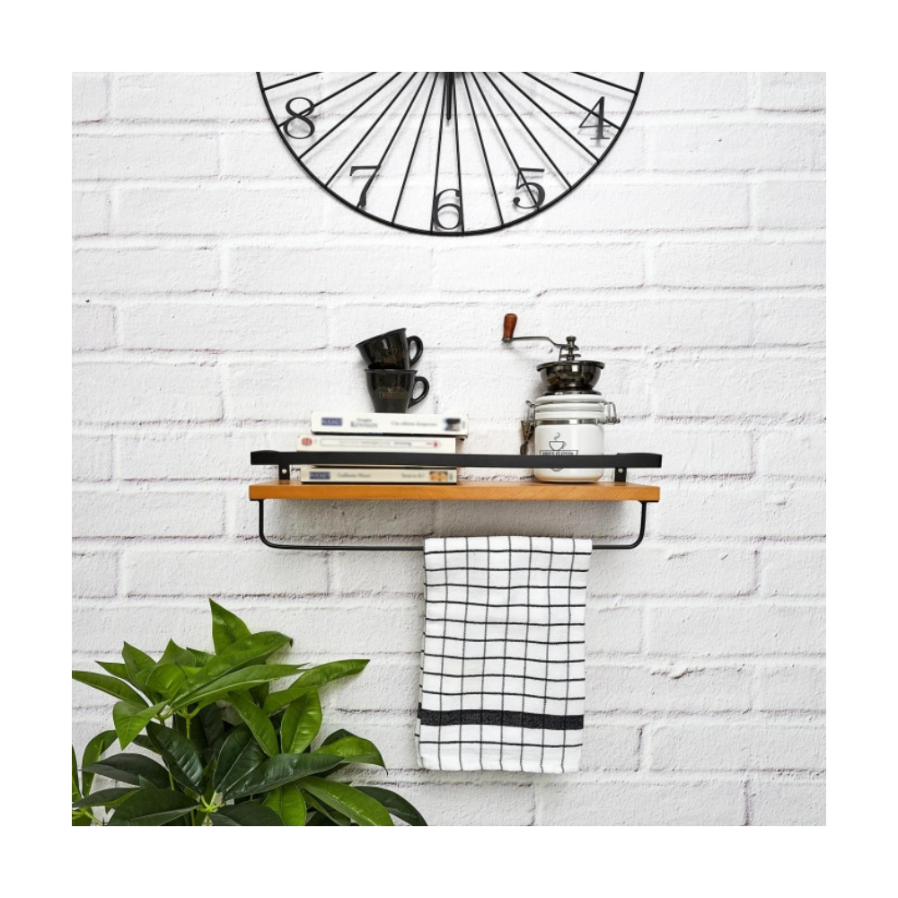 Apportez une note industrielle et pratique à votre intérieur avec l’étagère murale en bois 44 cm marron. Conçue en pin et métal, elle allie solidité et style tendance. Ses dimensions compactes (L. 44,5 × l. 13,5 × H. 14 cm) en font un allié idéal pour optimiser l’espace tout en décorant vos murs. Dotée d’un porte-torchon intégré, elle est parfaite pour la cuisine ou l’entrée. Légère avec seulement 0,8 kg, elle se fixe facilement et accueille vos accessoires ou objets déco avec élégance.