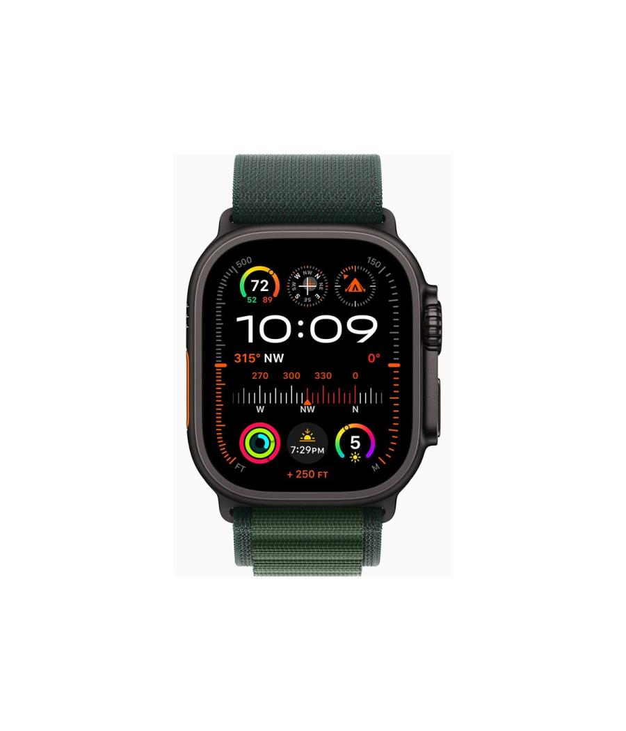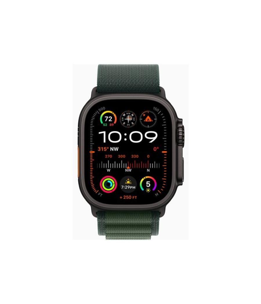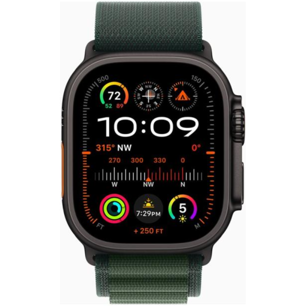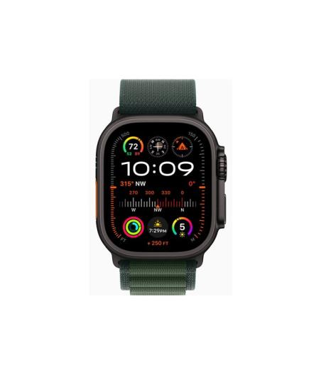 Apple Watch Ultra 2 - 49 mm - titane noir - montre intelligente avec Boucle Alpine - textile - vert foncé - taille du bracelet : M - 64 Go - LTE, Wi-Fi 4, UWB, Bluetooth - 4G - 61.8 g