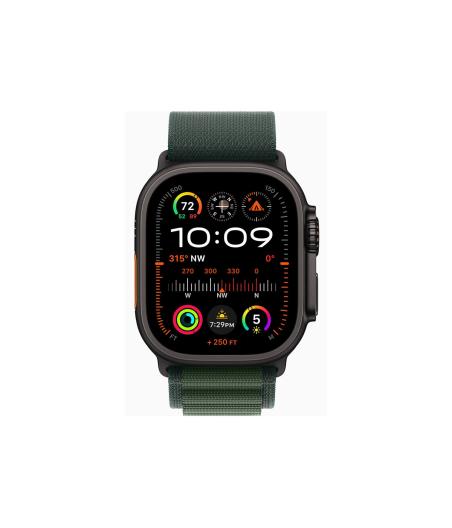 Apple Watch Ultra 2 - 49 mm - titane noir - montre intelligente avec Boucle Alpine - textile - vert foncé - taille du bracelet : L - 64 Go - LTE, Wi-Fi 4, UWB, Bluetooth - 4G - 61.8 g