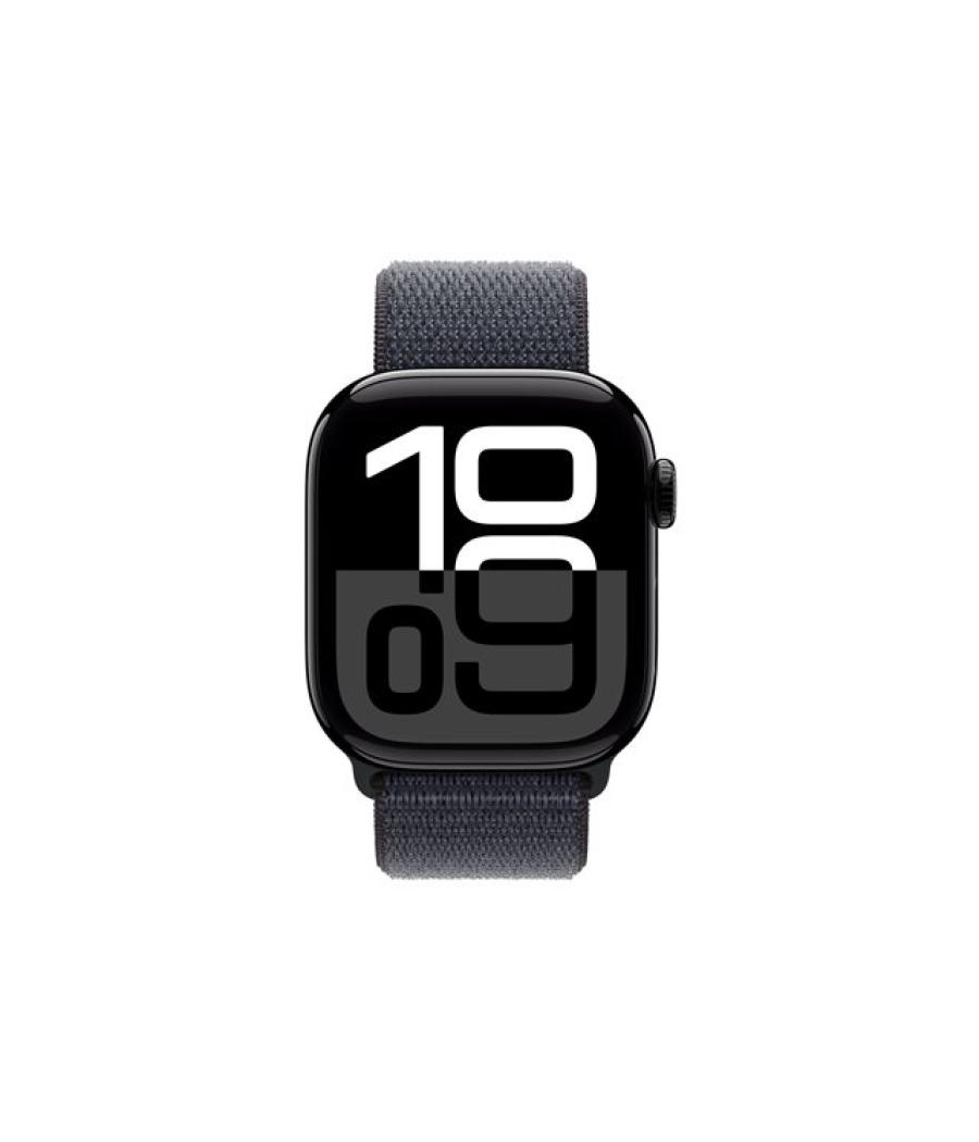 Apple Watch Series 10 (GPS) - 42 mm - aluminium noir jais - montre intelligente avec boucle sport - deux couches de matières textiles tissées - encre - taille du poignet : 130-200 mm - 64 Go - Wi-Fi 4, UWB, Bluetooth - 30 g