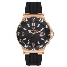 Montre SERGIO TACCHINI ST.1.10326-4 - Sexe: Homme - Couleur du cadran: Noir - Taille du boîtier: 44 mm - Matériau du boîtier: Acier inoxydable - Couleur du boîtier: Or rose - Matériau du bracelet: Caoutchouc - Couleur du bracelet: Noir - Verre: Cristal (résistant aux rayures) - Résistant à l'eau: 30 mètres - Type de mouvement: Quartz analogique.