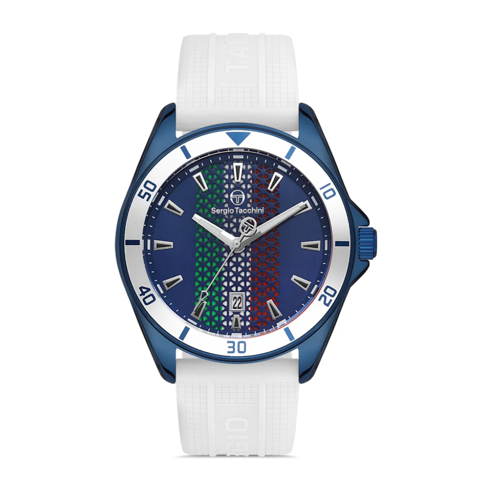 Montre homme SERGIO TACCHINI ST.1.10301-1 - Diamètre du boîtier: 44 mm - Boîtier: Acier - Matériau du cordon: Silicone - Résistant à l'eau: 50 mètres - Mécanisme: Quartz - Couleur du cordon: Blanc - Type de verre: Minéral - Forme du cadran: Rond - Forme du verre: Droite - Couleur: Blanc.