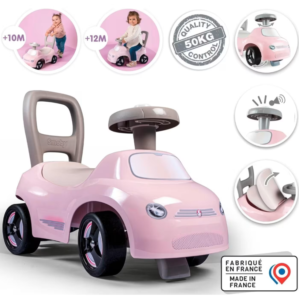 Porteur auto de couleur rose - Mesure 21 cm de large, 50 cm de long et 27 cm de profondeur pour environ 1.7 kg de poids - Utilisable dès l'âge de 8 mois - Contribue à l'amélioration de l’équilibre et de la coordination de l'enfant - Arbore un design hyper réaliste avec des motifs en forme de phares et pare-brise avant - Dispose d'un volant central et directionnel et facile à manier - Utilisé comme aide à la marche grâce à sa poignée arrière - Offre une stabilité optimale grâce à son système anti-bascule avant et arrière - Fait un poids de 1,5 kg pour 54 x 27 x 40 cm comme dimensions correspondant respectivement à la longueur, largeur et hauteur - Doté d'un grand coffre sous la selle pour le rangement de divers jouets - Intègre un klaxon de type pinet sur le volant.