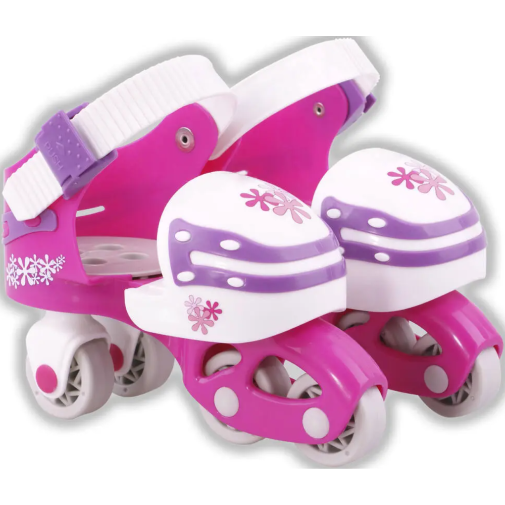 Patins évolutifs 2 en 1 de couleur rose - Ajustables de la taille 25 à la taille 32 - Fournis avec un manuel d’utilisation - Font 24 cm de long, 31 cm de large et 11cm de haut comme dimensions pour 890 kg comme poids - Fabriqués avec un design évolutif présentant une version patins pour débuter (2+2 roues) et une version roller (4 en ligne) - Offrent une capacité de portage de 20 kg maximum - Indiqués pour aider l’enfant à travailler son équilibre en toute sécurité avec le mode patin à roulettes - Recommandés pour l’initiation au patinage des jeunes enfants âgés de 3 ans et plus.