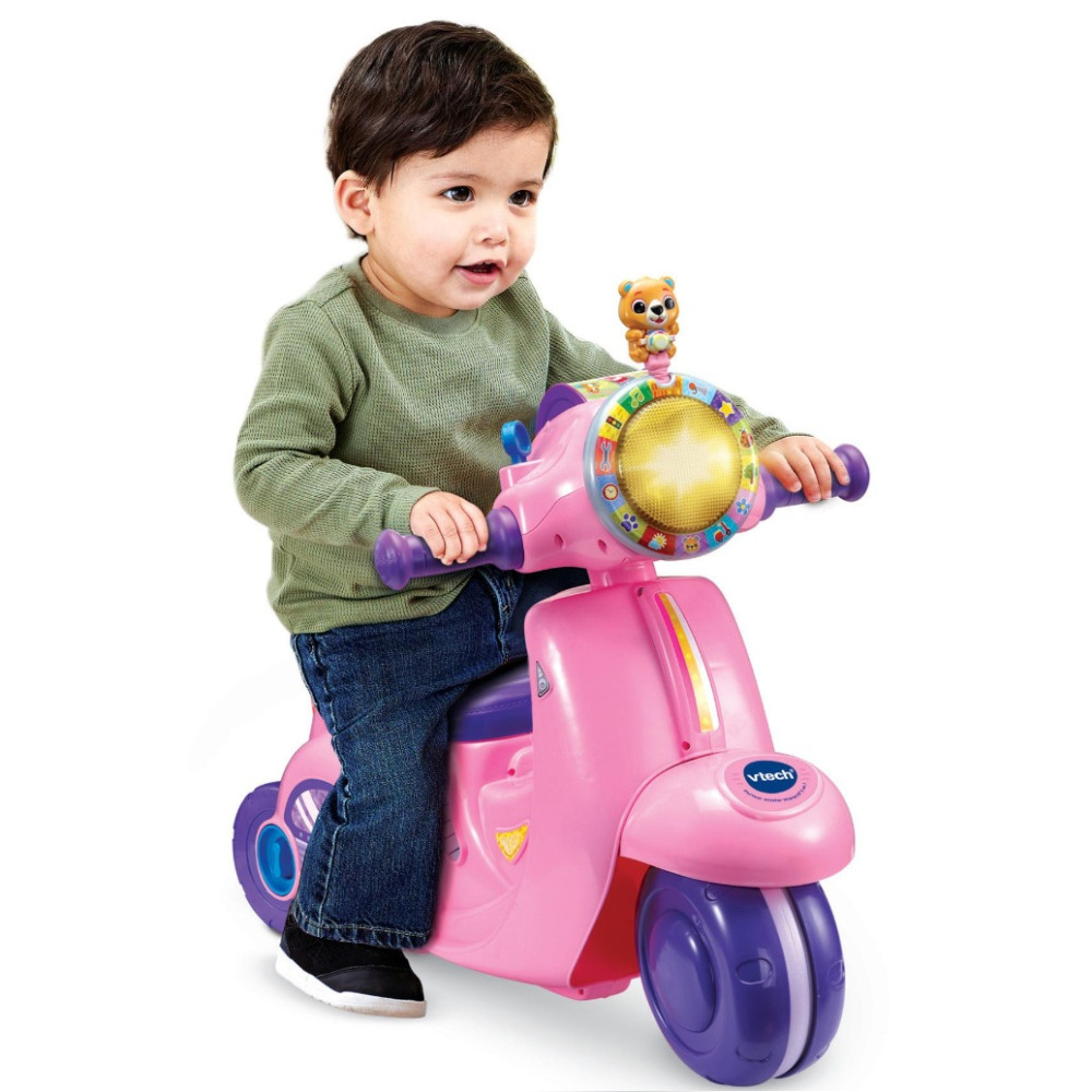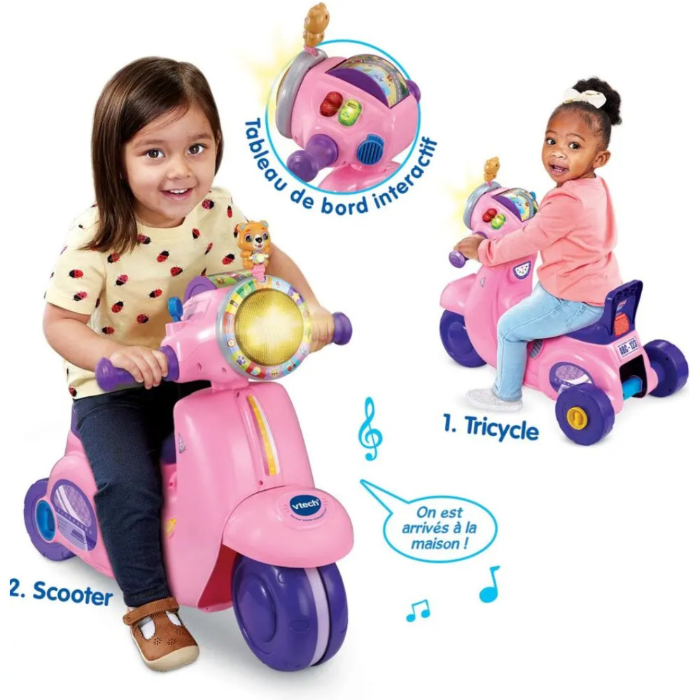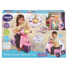 Porteur scooter interactif 3 en 1 - 12/ 36 mois. Un porteur interactif en forme de scooter pour que Bébé explore tout en apprenant ! Évolutif, il se transforme facilement en mode tricycle pour plus de stabilité ou en mode scooter sur 2 roues pour les plus grands ! Le rouleau GPS interactif permet à l’enfant de découvrir les différentes destinations à explorer et d’entendre des consignes de sécurité pour rouler en toute tranquillité. - Le petit ourson rotatif et les 2 boutons interactifs lui permettent aussi de découvrir les chiffres, les couleurs ou d’écouter des chansons et des mélodies.