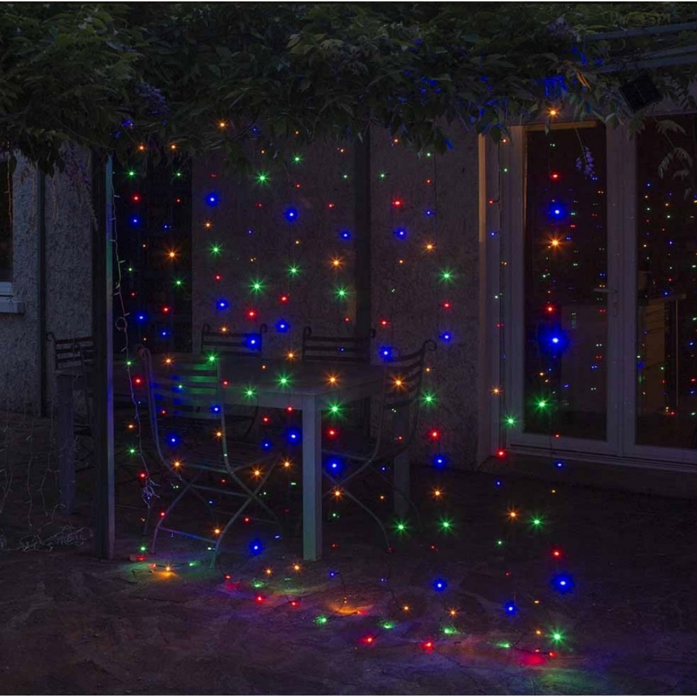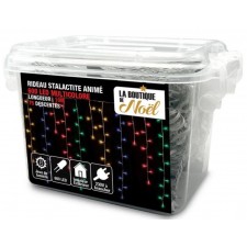 Rideau lumineux 300 x 200 cm 600 led multicolore-dimensions totales : l. 8 m. Du boitier à la 1 ère descente : l. 5 m. De la 1 ère à la dernière descente : 300 cm. Hauteur descente : h. 200 cm 20 led par descente, 10 cm entre chaque led. 10 cm entre chaque descente . Matière : câble en plomb. Poids : 1 kg environ. Coloris : câble transparent. Puissance max : 6 w (0,064 w /led). Alimentation : 220-230 v. Tension : 30 v. Intensité : 20 ma. Éclairage : 600 led. couleur : multicolore. Normes : ip44, ce. 30 Descentes. mode d’éclairage : 8 jeux de lumière. Intérieur / extérieur.
