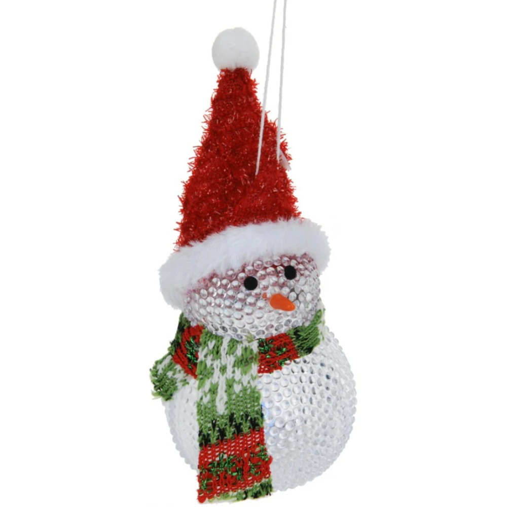 Bonhomme de neige intégrant 1 ampoule LED qui éclaire la figurine de l’intérieur et la rend brillante - Couvert avec un bonnet et une écharpe pour un rendu visuel hyper réaliste - Propose des variations de couleurs pour une ambiance hautement décorée et riche en couleurs - Fourni avec 3 piles LR41 pour une mise en marche immédiate après achat - Rehausse toute décoration de Noël en y apportant une touche colorée et particulière.
