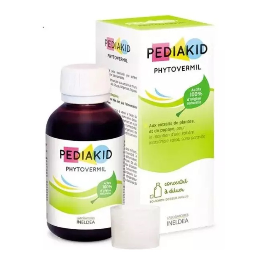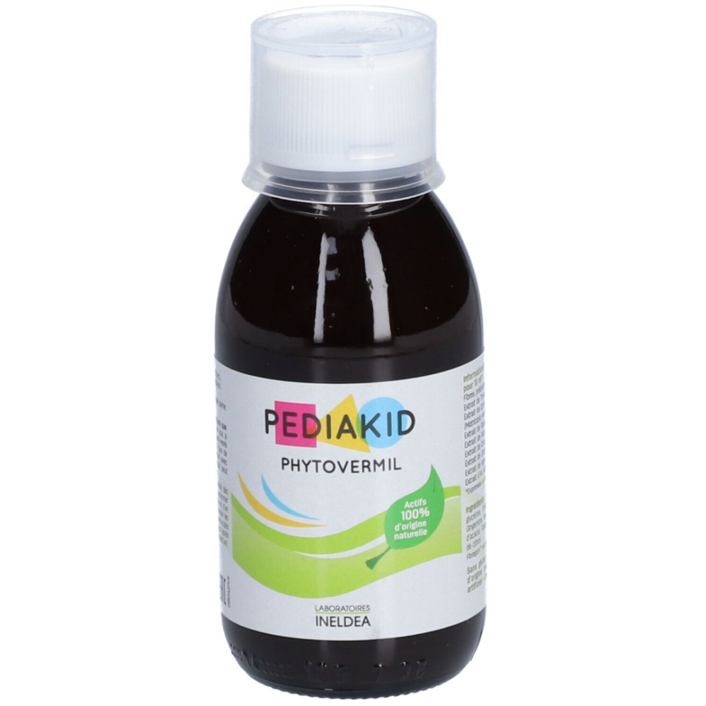 Phytovermil Pediakid est un complément alimentaire pour enfants, sous forme de concentré à diluer recommandé pour un sphère intestinale saine, sans parasite - Les extraits actifs de plantes contenus dans la gamme Pediakid sont rigoureusement sélectionnés pour leurs propriétés reconnues et leur action douce - Tous les concentrés buvables Pediakid contiennent des fibres solubles d'acacia, aux effets rééquilibrants de la flore intestinale - Ce complément alimentaire contient des extraits de thym, camomille, figuier, courge, gingembre, papaye, ail et noyer - Sans gluten - Au goût léger de fruits rouges - Concentré à diluer - Bouchon doseur inclus - Fabriqué en France - Propriétés: Maintenir une sphère intestinale saine, sans parasite...