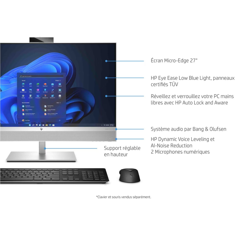 Ordinateur de bureau HP EliteOne 840 G9 - Wolf Pro Security - tout-en-un - Core i7 i7-14700 / jusqu'à 5.4 GHz - vPro - RAM 16 Go - SSD 512 Go - NVMe, TLC - UHD Graphics 770 - Gigabit Ethernet, IEEE 802.11ax (Wi-Fi 6E), Bluetooth bi-mode - Win 11 Pro - moniteur : LED 23.8" 1920 x 1080 (Full HD) @ 60 Hz - clavier : Français -
