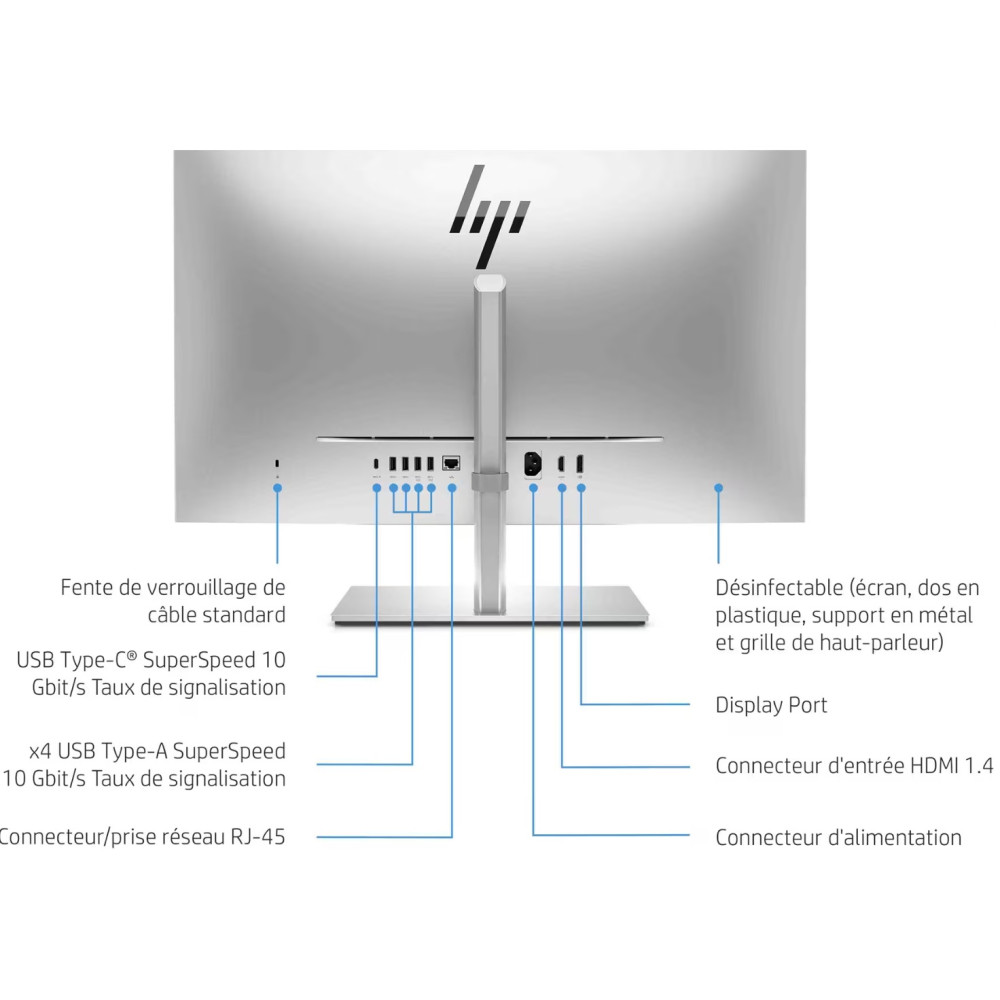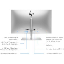 | Caractéristiques du moniteur | Anti-éblouissement, contrôle de la fréquence d'images de la vidéo (Frame Rate Control), technologie Low Blue Light, support basculant (- 5 °- 20 °), rotation de l'écran 90°, hauteur réglable (130 mm) |