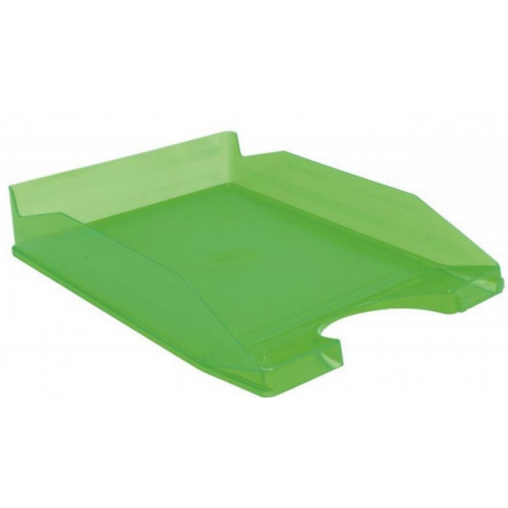 Corbeille à courrier translucide vert. En polystyrène. Pour documents jusque 24x32cm. Se superposent.