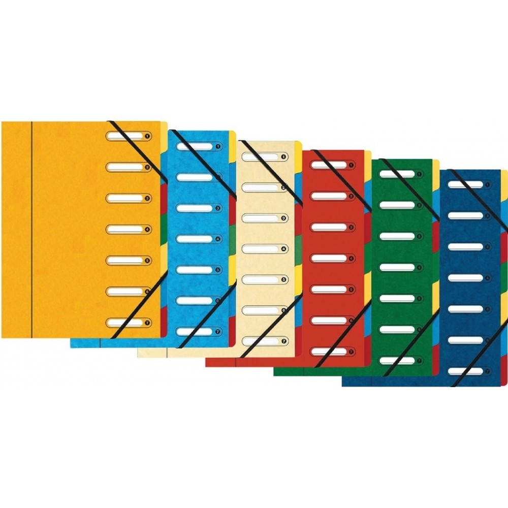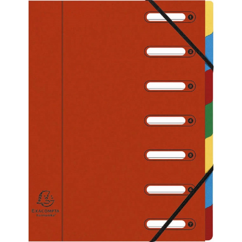 Trieur harmonika EXACOMPTA avec fermeture à élastiques - Nombre de compartiments : 7 - Fenêtres découpées - Format : 320 x 240 mm - Assortiment de couleurs.