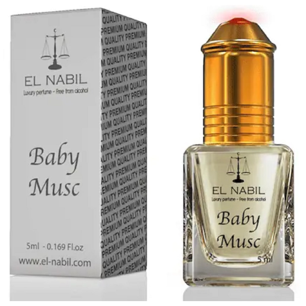 Extrait de parfum El nabil Baby Musc pour bébé sans alcool et hypoallergénique - Spécialement formulé pour la peau délicate des bébés et des enfants - Associe une composition aromatique tendre et délicate de fleurs reconnues pour leurs vertus adoucissantes - Procure bien-être et fraîcheur au bébé en toutes circonstances - Composé d'arômes fraiches, fleuries et musquées.