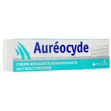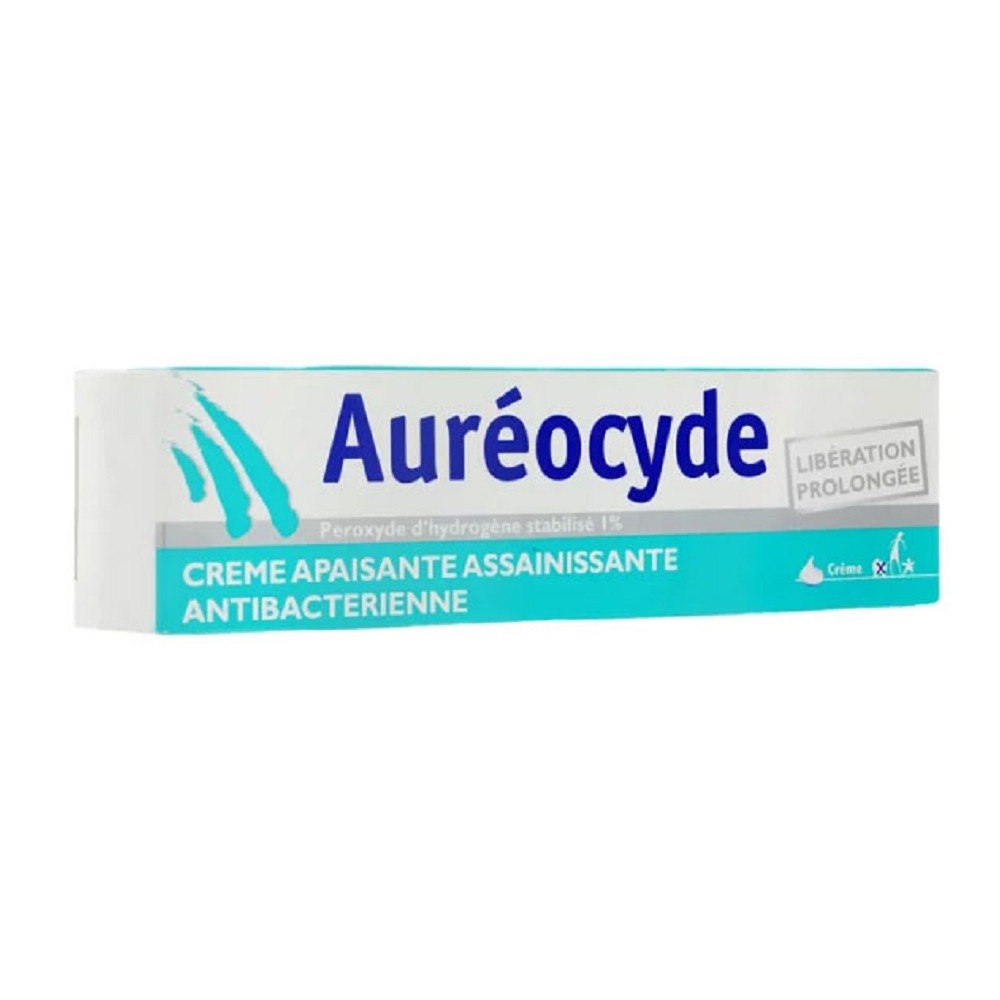 Crème apaisante assainissante Auréocyde recommandée dans le traitement des lésions superficielles de la peau comme les brulures, l'acné, les coupures, les plaies ou encore les piqûres - Combine des propriétés assainissantes et antibactériennes qui permettent de désinfecter efficacement et surtout d'éviter une surinfection, créant par la même occasion des conditions optimales à une bonne cicatrisation. Composition : Aqua, glyceryl myristate, glyceryl laurate, propylene glycol, hydrogen peroxide, PEG-100 stearate, citric acid, sodium hydroxide, salicylic acid, disodium edta, sulfuric acid, tetrasodium pyrophosphate, sodium stanate.