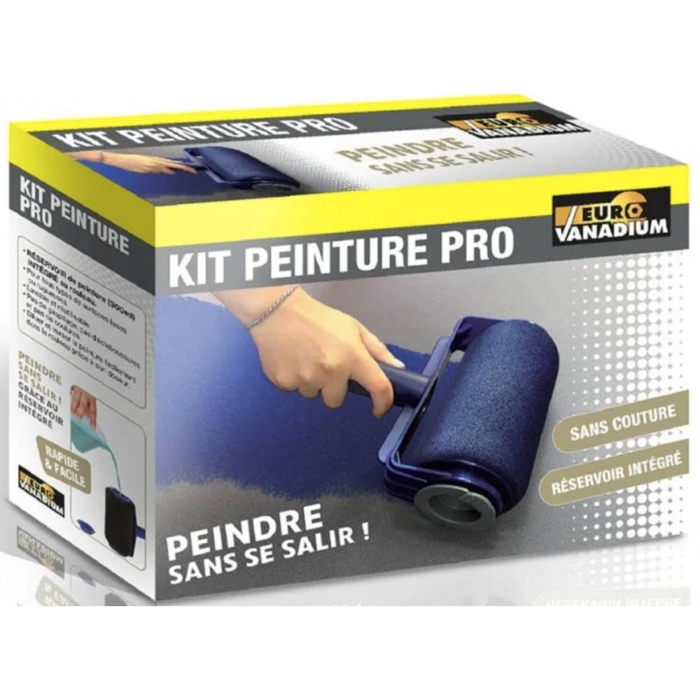 Rouleau de peinture avec réservoir. Peignez proprement et en un temps record grâce à ce kit de peinture pro composé d'un rouleau grande surface, d'un rouleau à réchampir, d'un pinceau d'angle, d'un doseur gradué et d'un bac repose rouleau. Le rouleau à réchampir est équipé d'un réservoir intégré ce qui vous fera gagner du temps et des économies de peinture ! Fini les bavures, vos surfaces seront lisses et uniformes. Equipé d'une poignée adaptable sur manche filté de diamètre 1.5 cm, le rouleau à réchampir vous permettra de peindre plafonds et surfaces hautes sans craindre des projections de peinture. La peinture en hauteur ne sera plus une corvée ni synonyme de douleurs dorsales ! Un pack complet pour réaliser des travaux de peinture comme les professionnels. Informations techniques. Matière : armature : en plastique, pinceau : en microfibre. Dimensions rouleau : longueur : 19 cm, diamètre : 8,5 cm, hauteur : 20,5 cm. Dimensions rouleau à réchampir (avec manche) : longueur : 11 cm, largeur : 9,5 cm, hauteur : 28,5 cm. Dimensions bac : longueur : 22 cm, largeur : 12 cm. Dimensions pinceau angle 90° : longueur : 5,5 cm, largeur : 5,5 cm, hauteur : 20 cm. Ce kit comprend : 1 rouleau (microfibres) grande surface avec réservoir intégré, 1 rouleau (microfibres) à réchampir avec réservoir intégré, 1 pinceau d'angle, 1 doseur gradué 1l, 1 bac repose rouleau.