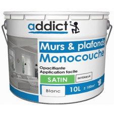 PEINTURE MURS ET PLAFONDS ADDICT 10L BLANC SATIN MONOCOUCHE