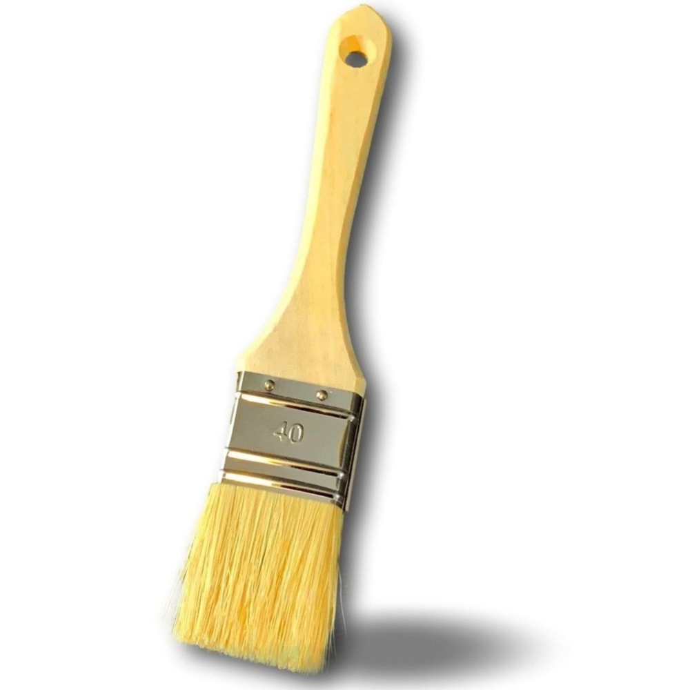 Pinceaux plat No 40 type queue de morue - virole en acier - 50 % soie 50 % synthétique - Largeur 40mm - Version très épaisse qualité pro - Vernir laquer lisser - convient pour tout type de peinture