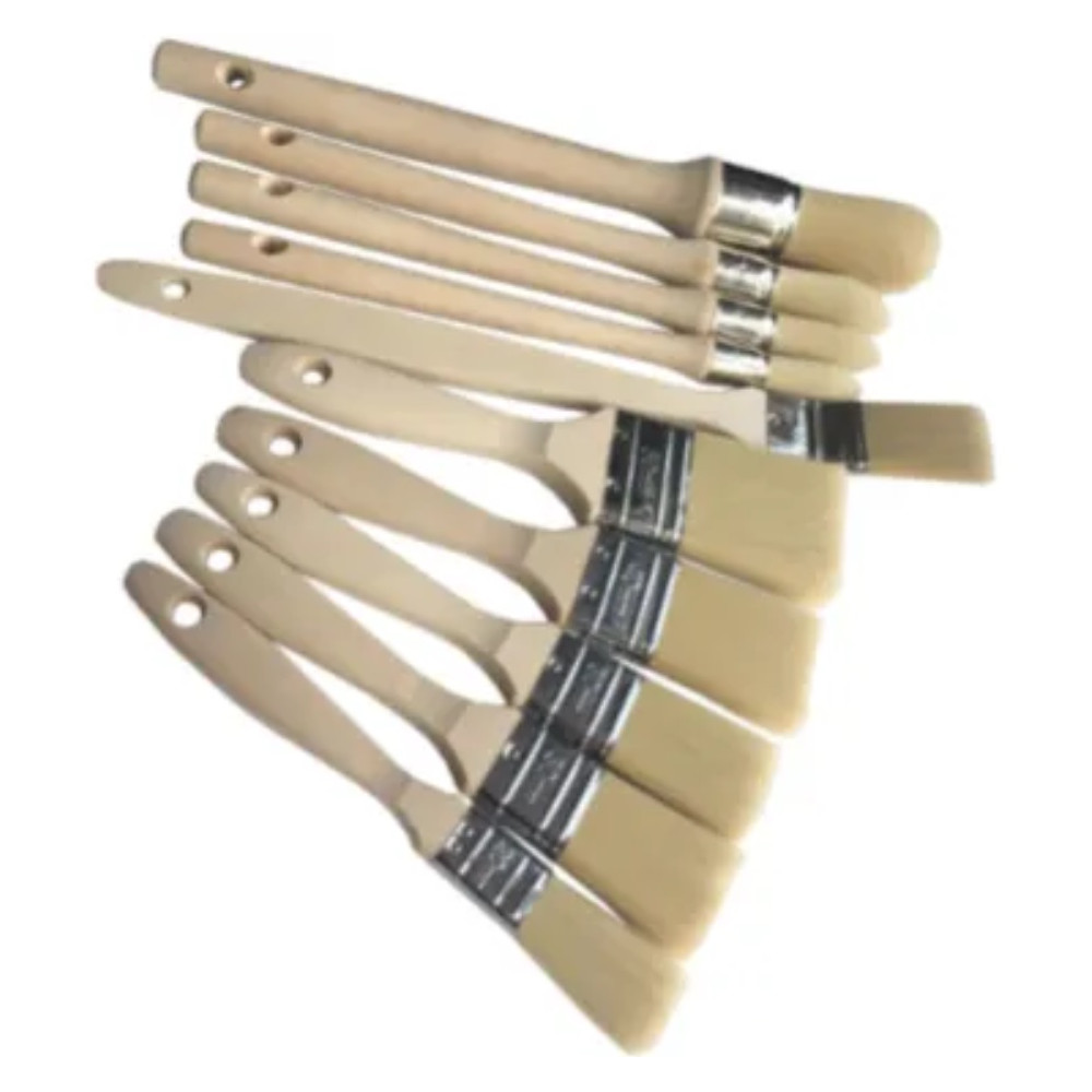 Manche en bois naturel poncé.  Soies blanches naturelles supérieures stabilisées et fibres synthétiques. Recommandé pour peintures phase solvant. Idéal pour dégager les angles et peindre les encadrements, fenêtres et moulures et radiateurs.