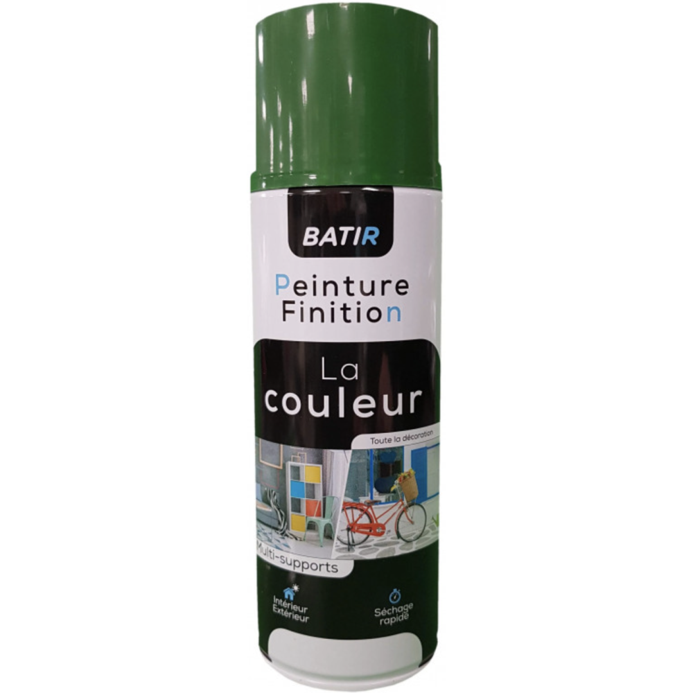 Peinture en aérosol Reca déco & finition multi-supports (bois, plâtre, métal, plastique, verre) - Référence : BATN113768 - Intérieur / extérieur – séchage rapide - Très bonne brillance & opacité - Résistante, suit les mouvements du support - Appliquer sur support propre, sec, dégraissé + sous-couche conseillée - Test recommandé sur zone cachée - Purger tête en bas si bouché - Nettoyage : Acétone - Sec : 15 min (poussière), 30 min (toucher), 24h (complet) - Rendement 400 ml : ± 0,8 m² - Couleur : Vert menthe brillant – RAL 6018 - EAN : 3661521137681.