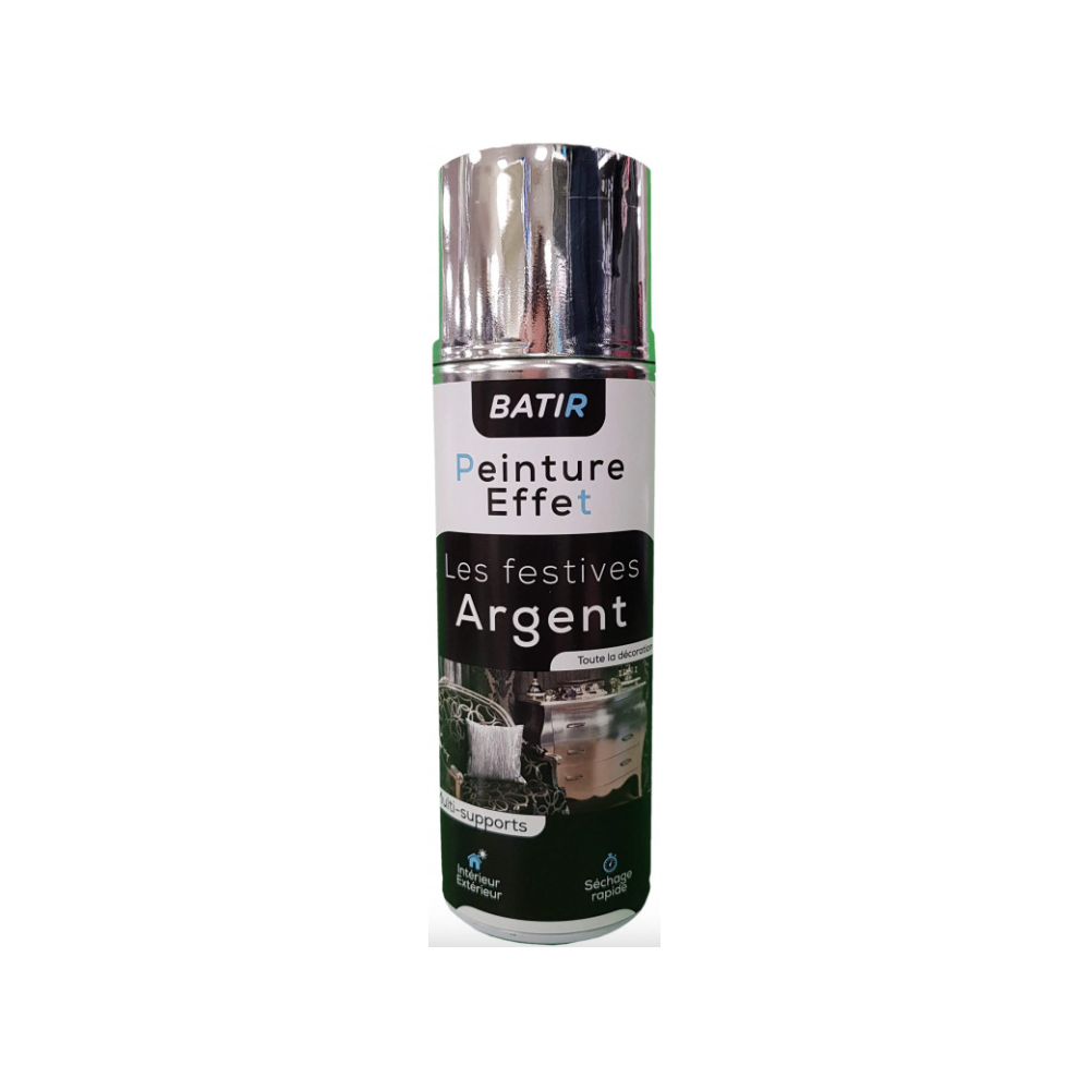 Peinture aérosol Reca - Référence : BATN113772 - Type de liant : Acrylique modifié - Teinte : Argent mat - Viscosité : 12 ”F4 à 20 °C - Pression : 4,2 à 4,8 bar (20 °C) / 7,6 à 8,4 bar (50 °C) - Application : Agiter 2 min, pulvériser en couches croisées à 25 cm - Support : Propre, sec, dégraissé - Recouvrabilité : Non recouvrable par d’autres peintures - Nettoyage : Acétone - Séchage à 20 °C : Hors poussière : 8–10 min ; Sec au toucher : 20–30 min ; Complet : 18–24 h - Rendement : 0,9–1,1 m² par aérosol (400 ml) - EAN : 3661521137728.