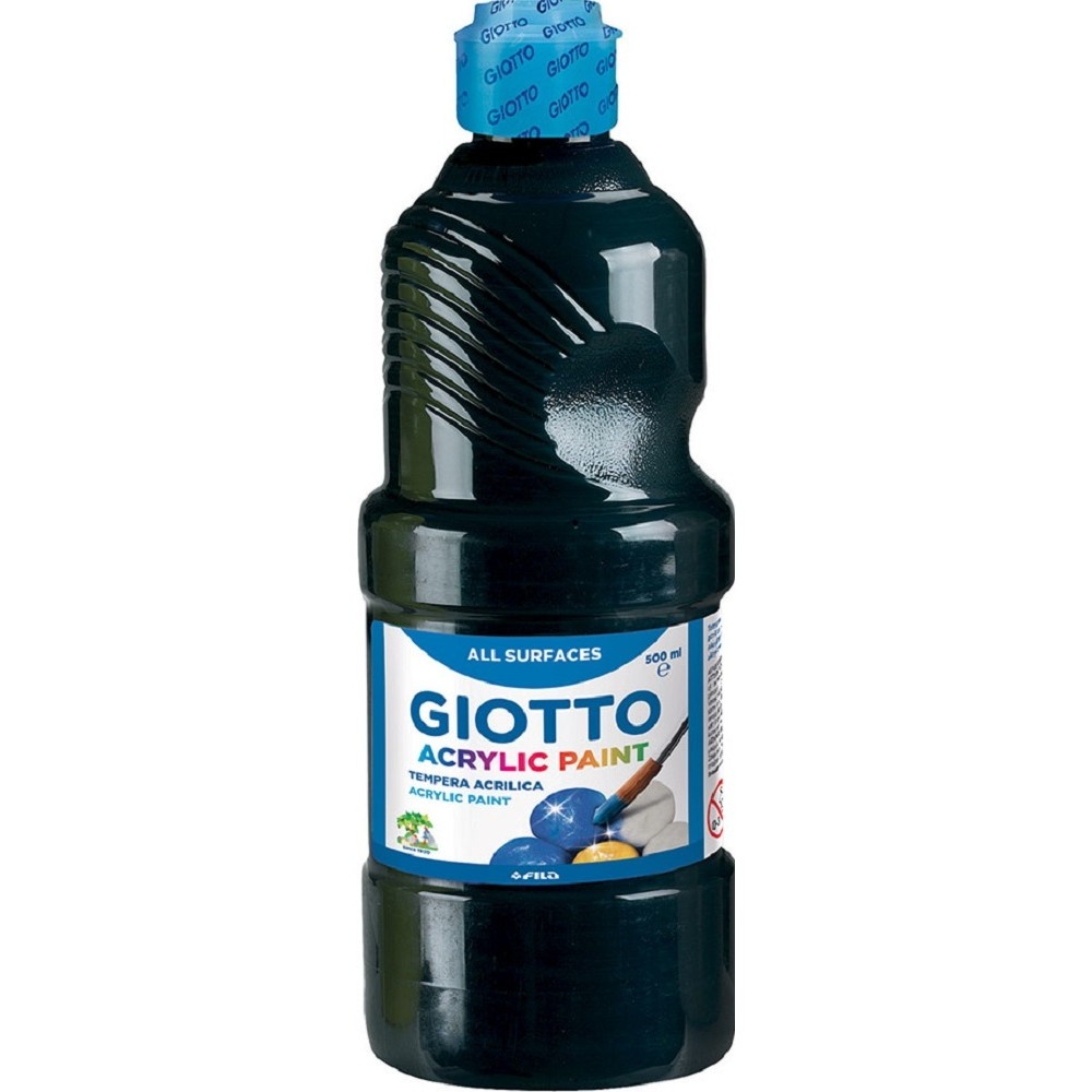 Gouache GIOTTO flacon 500ml noir - Peinture acrylique adhérant à tous supports à base d'eau, couleur noir. Conçue et élaborée pour les loisirs adultes comme enfants. Contenance 500 ml. Produit aux normes française. Application facile et finition brillante lorsque la peinture a séché. Nettoyage des outils à l'eau.