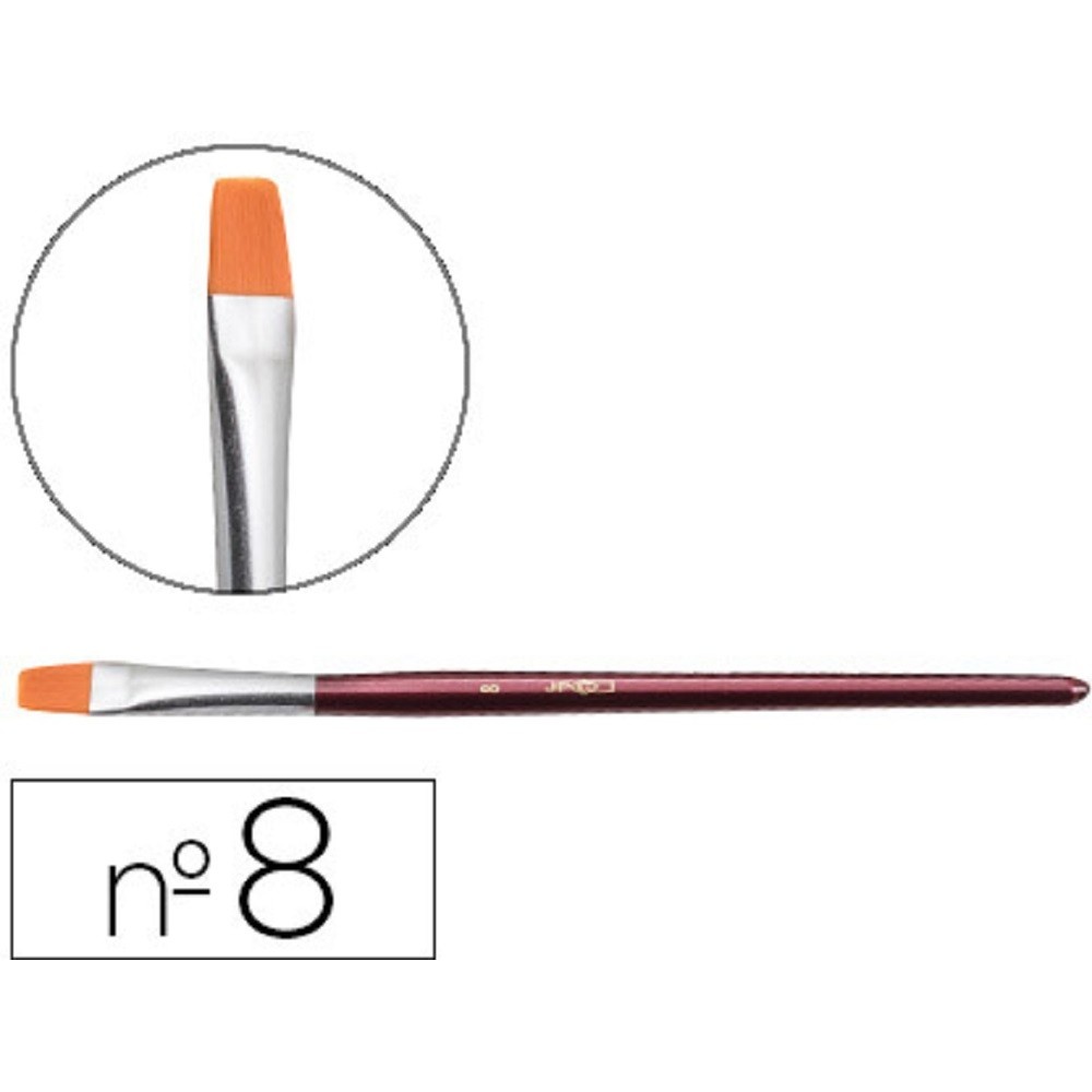 Pinceau jpc brosse virole aluminium poils synthétiques nº8 ocre jaune manche court bois rouge métallisé.