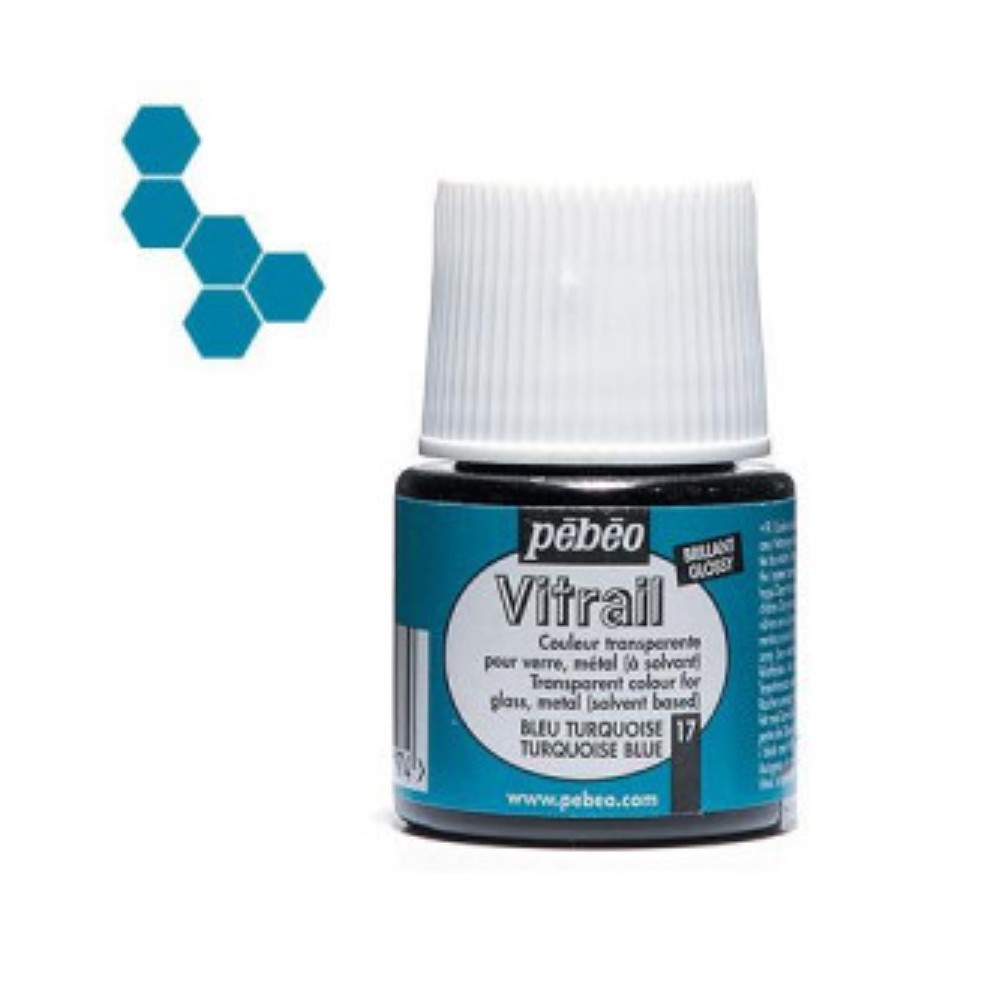 La gamme de peinture Vitrail de Pébéo est composée de 26 couleurs transparentes, intenses et brillantes. En adition avec le Cerne Relief Vitrail de la même gamme, elle permet limitation parfaite de vitraux. Le travail s'effectue au pinceau, ou bien en technique à la cuve. Le séchage se fait à l'air libre, les couleurs sont miscibles entre elles. Attention : les objets décorés avec les couleurs Vitrail doivent être considérées uniquement comme des objets décoratifs et seules les surfaces non destinées à être mises en contact avec les aliments peuvent être décorées.
