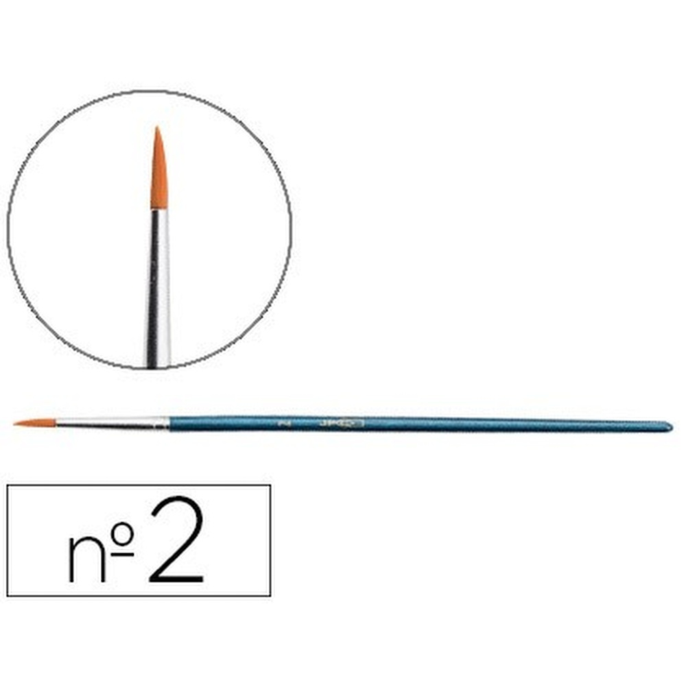 Pinceau scolaire rond N° 2 -Virole aluminium-Fibres synthétiques ocre jaune-Manche court en bois bleu métallisé-Gencod unitaire