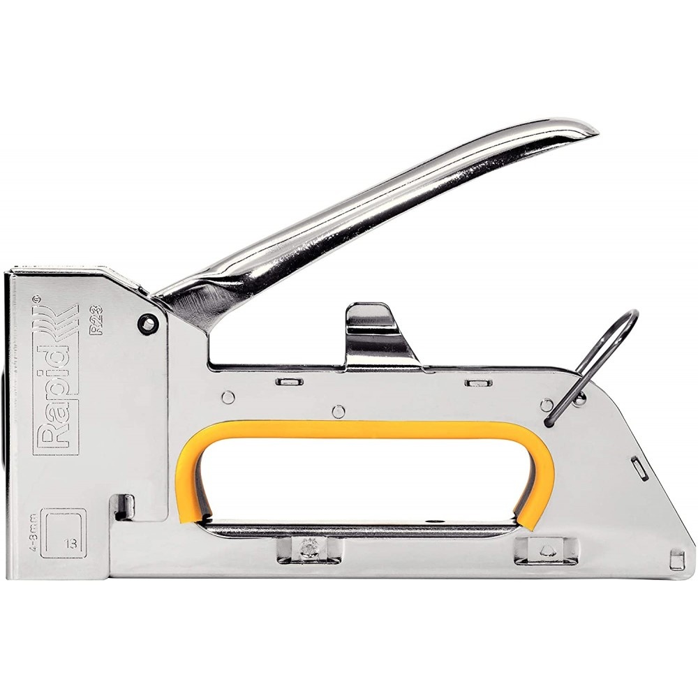 Agrafeuse RAPID R23E t et f blister - Marque: Rapid - Couleur: Gris - Matériau: Acier allié - Dimensions de l'article L x l x H: 12 x 3.4 x 18.4 centimètres - Style: Box - Taille agrafe: 13 (4-8 mm).