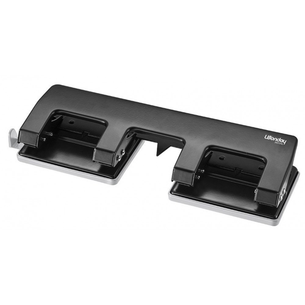 Perforateurs Essentials Metal 2 trous. Mécanisme tout métal. Equipé d'une réglette multi-formats, réservoir à confettis intégré et système de calage optimisé des feuilles. Ecartement : 8 cm. Trappe de vidage des confettis et bouton de verrouillage pour le rangement. Capacité 60/70 feuilles.