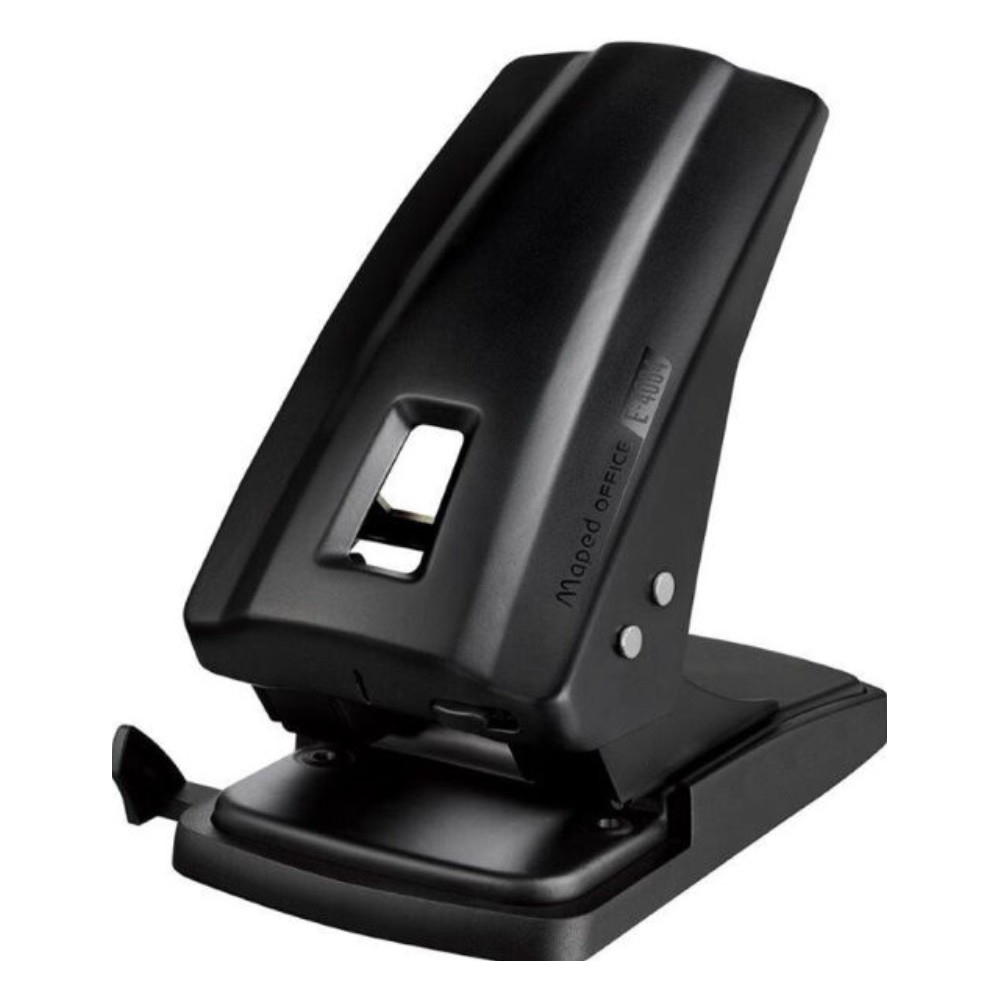 Maped Perforateur d'archives Expert HD150, noir/argent capacité de perforation: 150-180 feuilles, perforation: 80 mm, réglette de guidage, bac pour pièces de rechange, trappe pour le vidange des résidus de perforation, fourni avec 4 rondelles de rechange, poignée rotative soft.