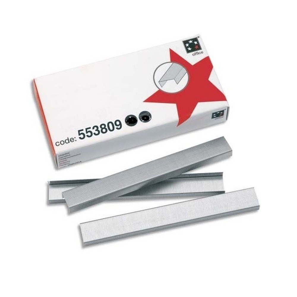 Boite 1000 agrafes 8-4 standard  cuivré - Marque : 5 Etoiles - Type d'agrafe : Agrafes 8/4 - Descriptif : 8/4 cuivrée - Agrafes par boîte : 1001 - Conditionnement : 1 - capacité d agrafage 1-5 mm - Ref : 960841