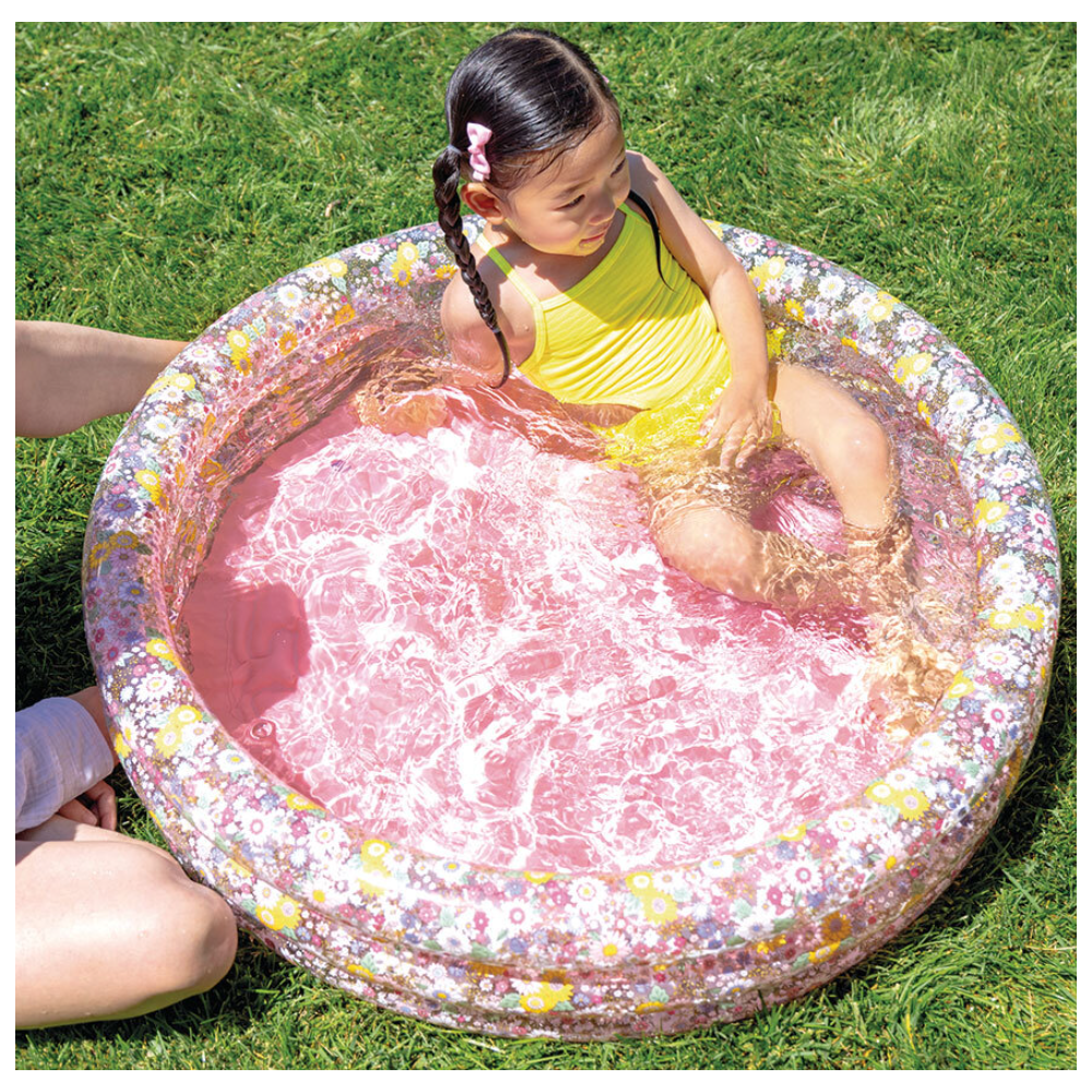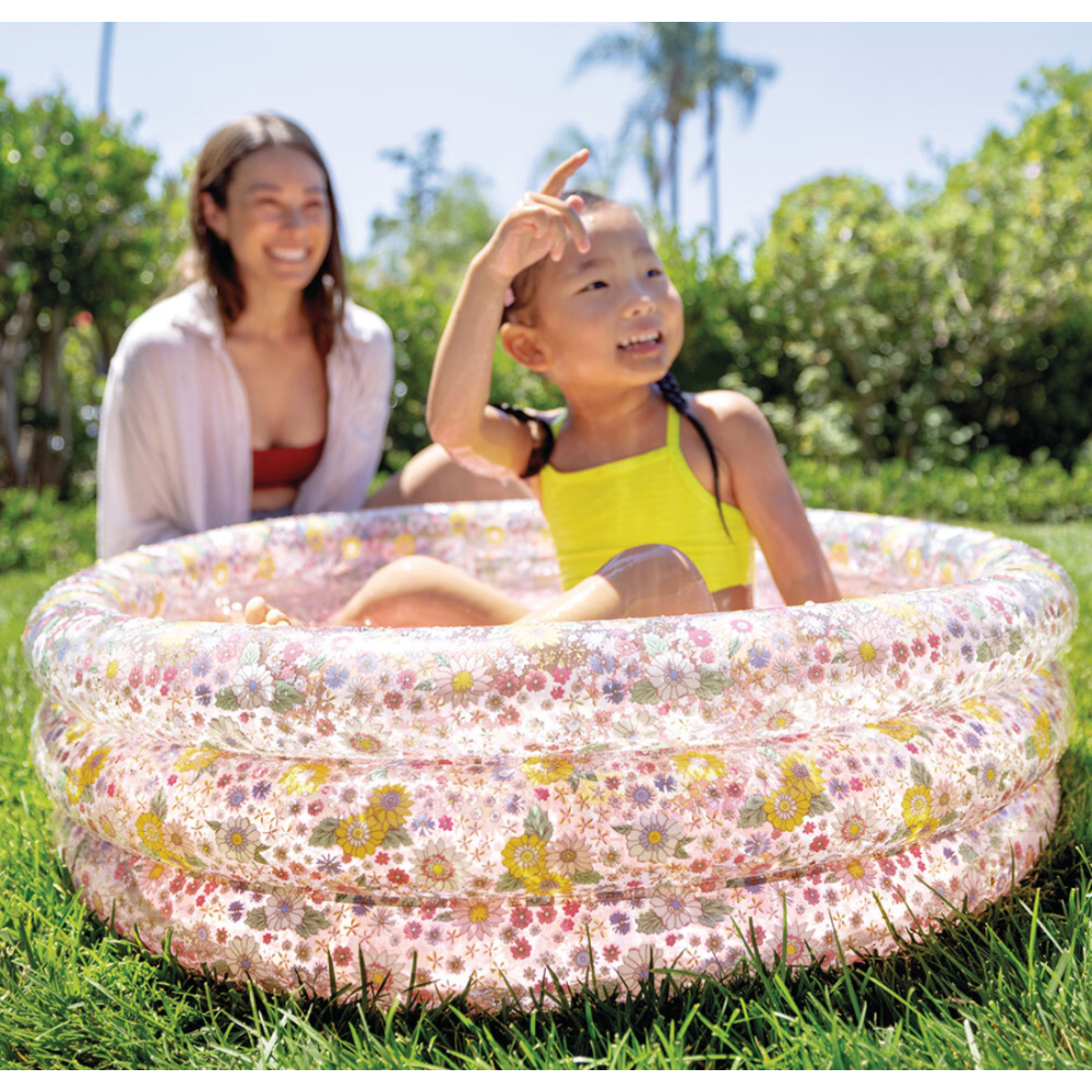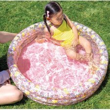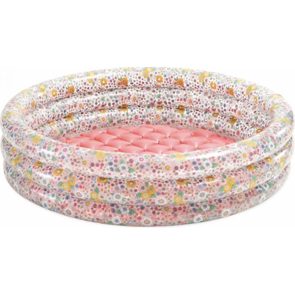 Piscine Romantic Flowers conçue pour contenir une hauteur d'eau de 15 cm - Adaptée pour la sécurité des enfants de 1 à 3 ans - S'intègre facilement dans tous les jardins, pour des moments de jeu assis dans l'eau - Dotée d’un fond matelassé rose aux boudins fleuris - Affiche un design gonflable qui prend forme en quelques instants. – Recommandée pour offrir des moments rafraîchissants aux tout-petits en été - Fait exactement 86 x 25 cm - Offre une capacité de 56 litres.
